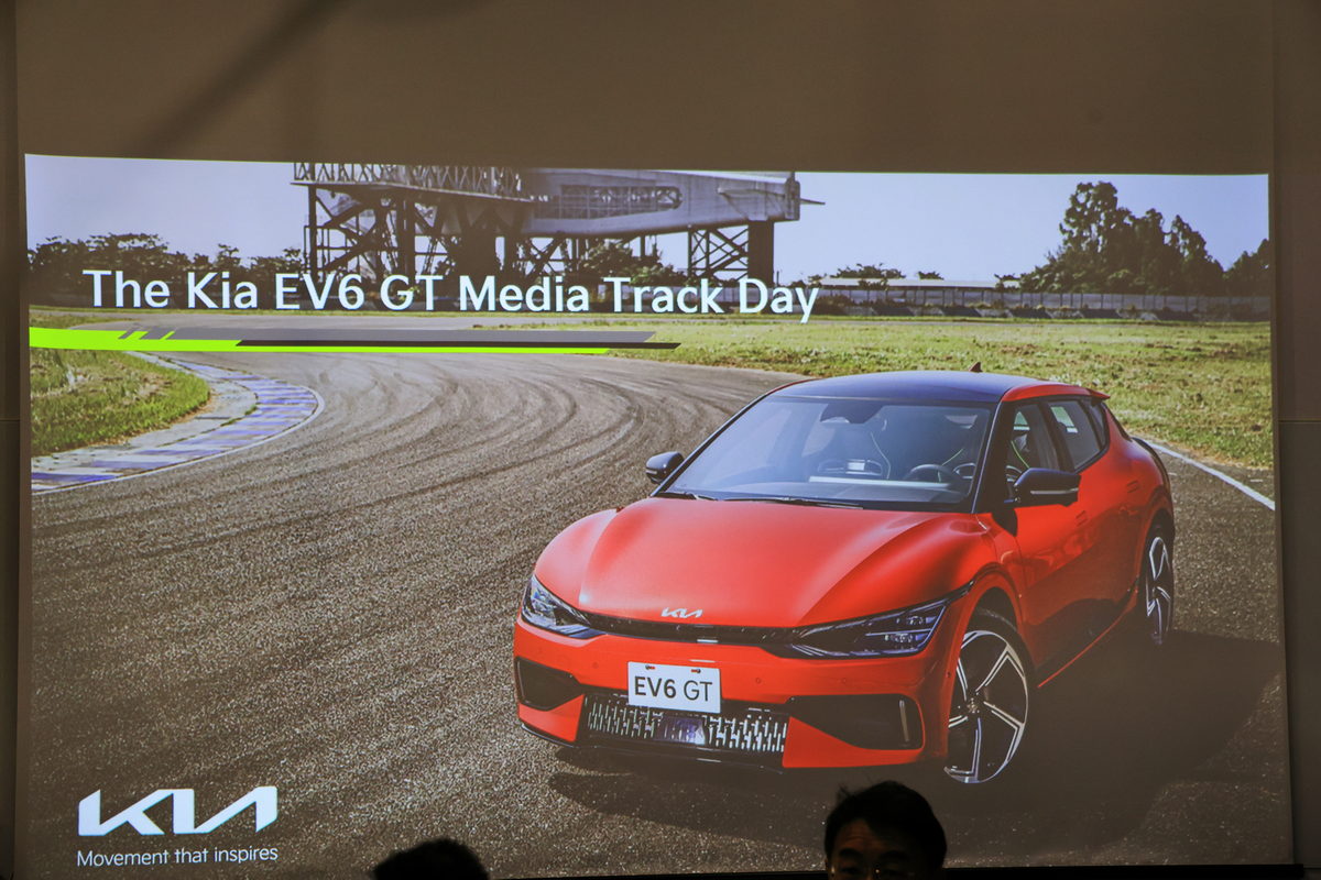 與媒體團們一同抵達賽車場報到完畢後,我們隨著許多車手的經典標語牆引領進入簡報室聽取本次EV6 GT規格數據,以及進入賽道體驗的各項關卡與駕駛方式之簡報,而在李昌益總裁與行銷協理李家易分享著Kia從Stinger開始塑造歐系車常強調的GT(Grand Touring)駕馭精神開始,到近年電動車引以潮流的世代,曾為BMW M部門工程副總的Dr. Albert Biermann,更是將任職於Kia所設計的GT轎跑車Stinger所擁有的駕馭元素,進而融入於Kia EV6之中,透過雙逆變器配置與馬達線圈匝數優化的設計,進而創造一部馬達可達驚人的21000rpm,進而榨出585ps最大馬力、最大扭75.5kg.m、0-100 km/h僅3.5秒的“家庭取向SUV”EV6 GT車型。