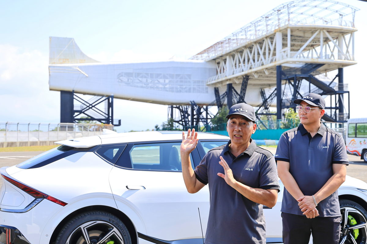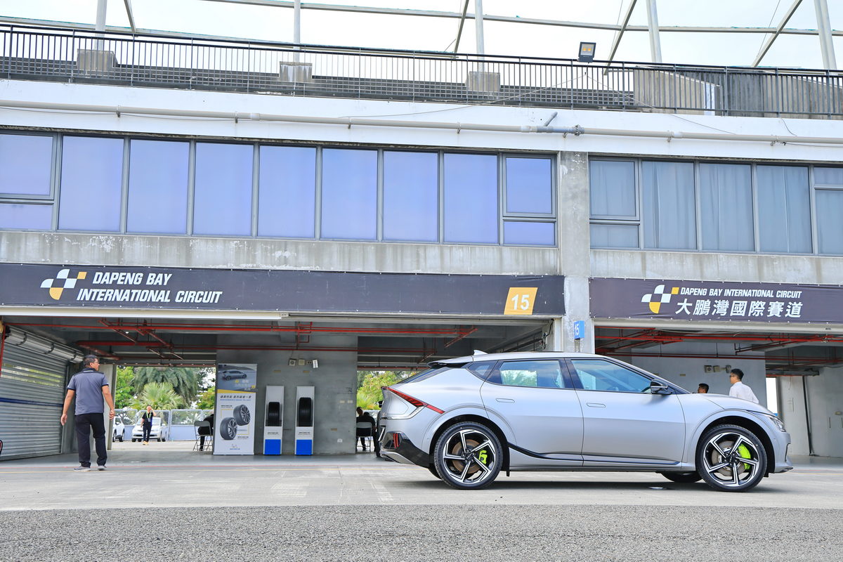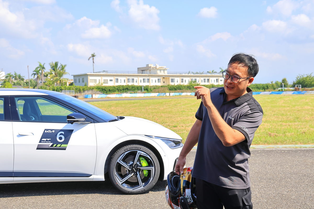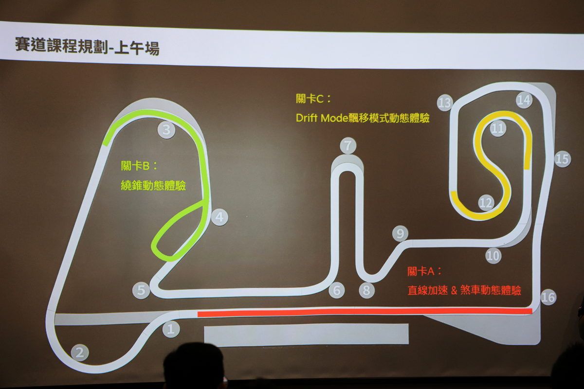 簡短的EV6 GT簡報後,在這次的賽道體驗活動中,王上元總教練與我們分享首先於上午時段分成直線加速&剎車動態體驗、繞錐動態體驗,以及在11-12號灣相當熱血且從未親身體驗過的電動車甩尾的Drift Mode飄移模式動態體驗共三道關卡,而在下午則是坐進駕駛艙,在大鵬灣賽道中,暢快的體驗全長3.5km的Hot Lap飆速體驗。