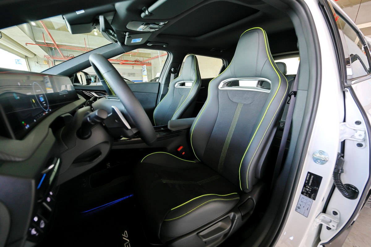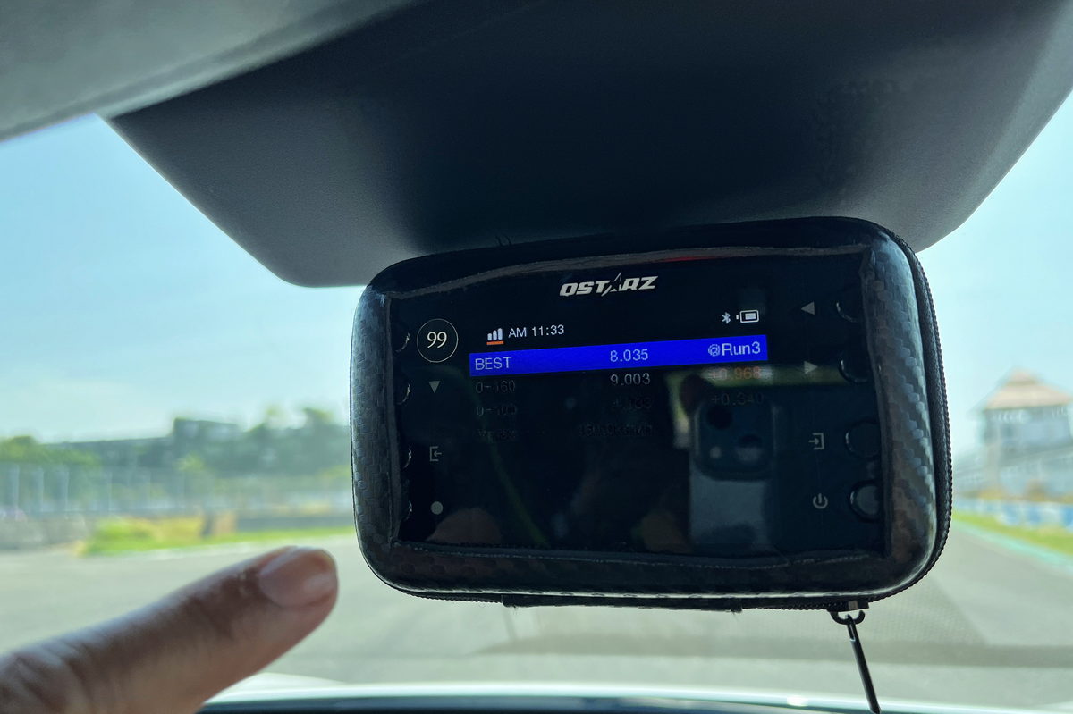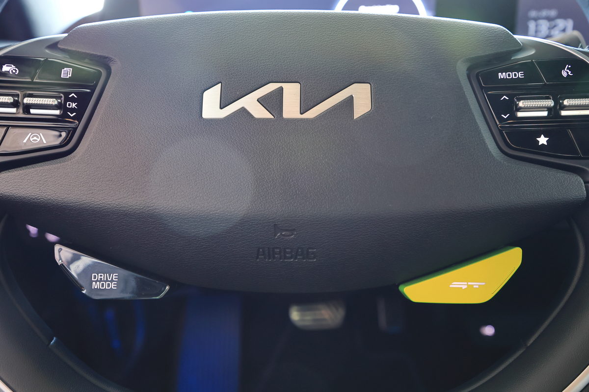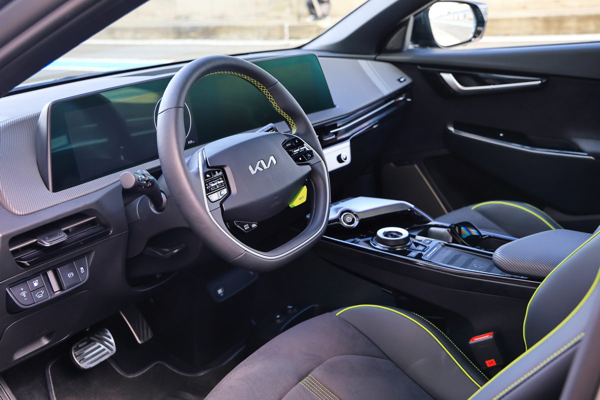 在櫃台領取進入賽道前必須戴上的安全帽後,首站我們前往第一道關卡直線加速&剎車動態體驗,在教練的提示下,我們只要按下方向盤上的GT模式按鍵,喚醒EV6 GT的585ps/75.5kg.m最大動力,接下來只要大腳踩足“電門”,感受這部0-100km/h僅3.5秒的猛烈加速貼背感,而更有趣的是,在大鵬灣的大直線路段中體驗0-100km/h加速度其實稍縱即逝,同時EV6 GT的75.kg.m飽滿加速扭力更適合在此路段體驗0-160km/h的加速測時,於是我與教練兩人坐進EV6 GT,在直線底的大飛機地標下開始起步加速至160km/h,沒想到兩個人約莫150kg的載重,0-100km/h僅4.133秒達成、0-160km/h更是飛快的9.003秒,同時通過龍門後,也不需過於重踩煞車,透過自身的動能回收系統作動下,不僅感受充滿效率的減速之外,同時也將動能轉化為電能回充至電池之中,我們這一趟連續衝刺了10多次,EV6 GT卻沒有絲毫熱衰退現象,換成是過往的汽油動力車款,不僅早已衰退,而且為了做出最佳數據,更需要關閉冷氣熱得半死,但我們在EV6 GT上,始終享受著沁涼的恆溫空調,實在太爽快了。