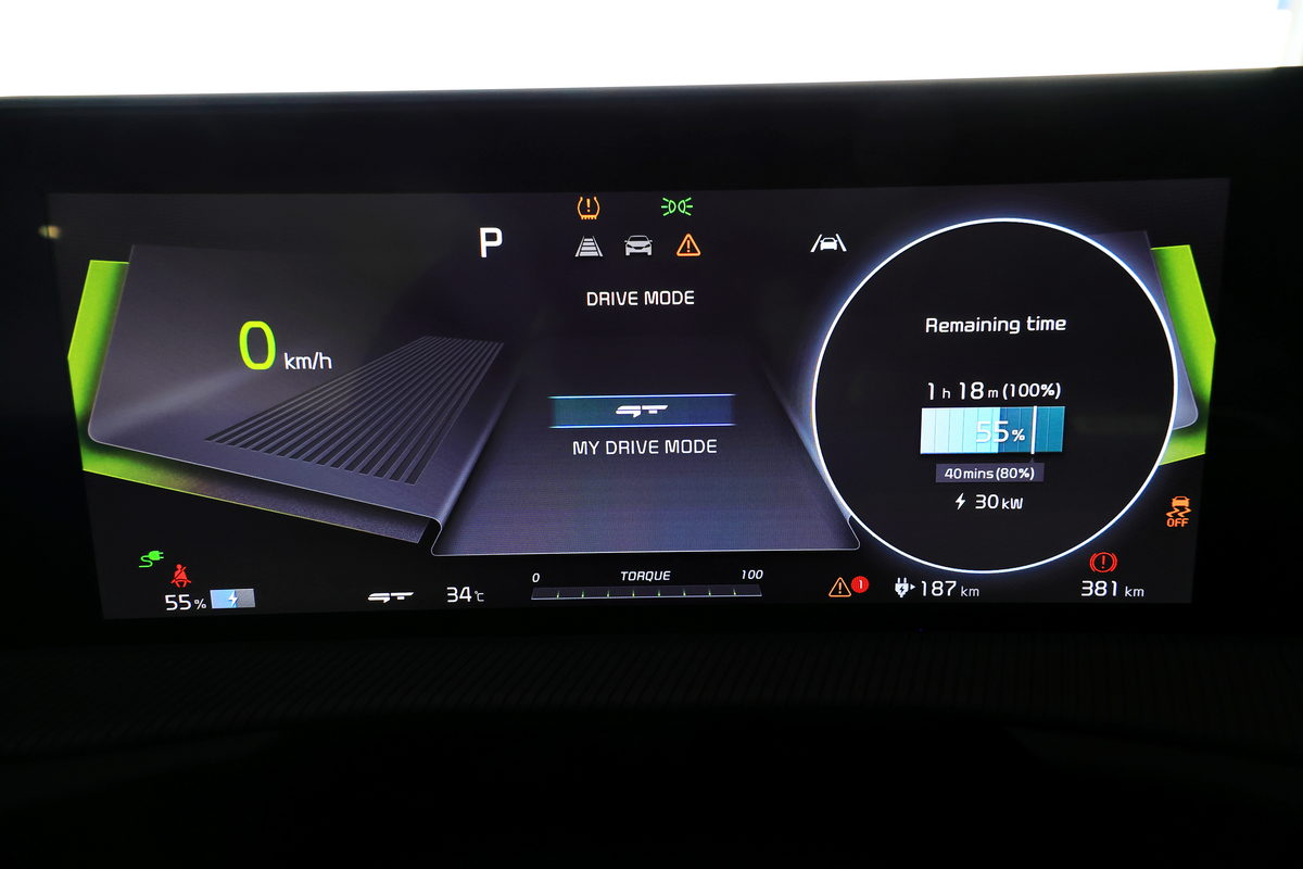 上午活動告一段落後,同業一行人接前往位於2樓的Lounge吃上一頓豐盛的自助餐,同時彼此分享上午試駕操控感受,不過旅伴們是否也與我一樣好奇,如此大陣仗的媒體活動, EV6 GT奔馳了一個上午的激烈操駕,下午還有足夠電量應付媒體們盡情馳騁大鵬灣賽道的活動嗎?於是帶著這個好奇心,我很快地吃完午餐,走下1樓的Pit Box,不僅好好欣賞EV6 GT在內裝上施以更為熱血且在上午三道關卡皆能給予服貼支撐的GT運動化桶型座椅,以及彰顯GT車型醒目霓紅綠剎車卡鉗搭配21吋GT專屬五幅鋁圈,並穿上源自電動方程式賽事科技,專為電動車開發的Michelin Pilot Sport EV配胎,更能一眼看出EV6 GT與一般EV6版本更多了分躁動的性能味!就在欣賞的同時,隨即發現了一部EV6 GT正在進行充電,定眼一看,才發現,沒有充電樁設置的大鵬灣賽道Pit Box,Kia Taiwan台灣森那美起亞則是使用可移動式的直流快充機,為EV6 GT進行快速充飽電力的後勤服務,提到EV6的快充效率,想必旅伴們對於從10%充至80%僅18分鐘的驚人速度還記憶猶新,而此時此刻,在賽車場能為電動車充飽電能的便利優異性,我想對未來電動車的玩家們能更願意走進賽道,在一個安全的環境中,享受開著愛車,盡情榨出所有動力攻克賽道的熱情呢!