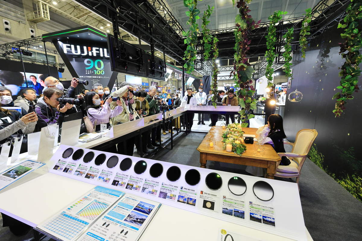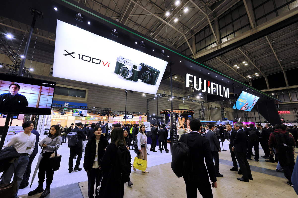 我想,在這次攝影器材展中,FUJIFILM應是相當受到矚目的品牌,因為全新一代的經典文青相機X 100 VI以打頭陣的姿態,引領整個FUJIFILM的展場,讓拍攝試用的人潮始終絡繹不絕,大排長龍。此外,現場不僅只是X 100 VI提供是拍體驗,展場中,更以相當鮮豔、飽和的色彩空間組合,讓參觀民眾一次體驗X系列的H2s、T5、S20,甚至是GFX 中片幅數位相機,感受其FUJIFILM向來強調如同自家正/負片濃郁色彩與風格的拍攝體驗。