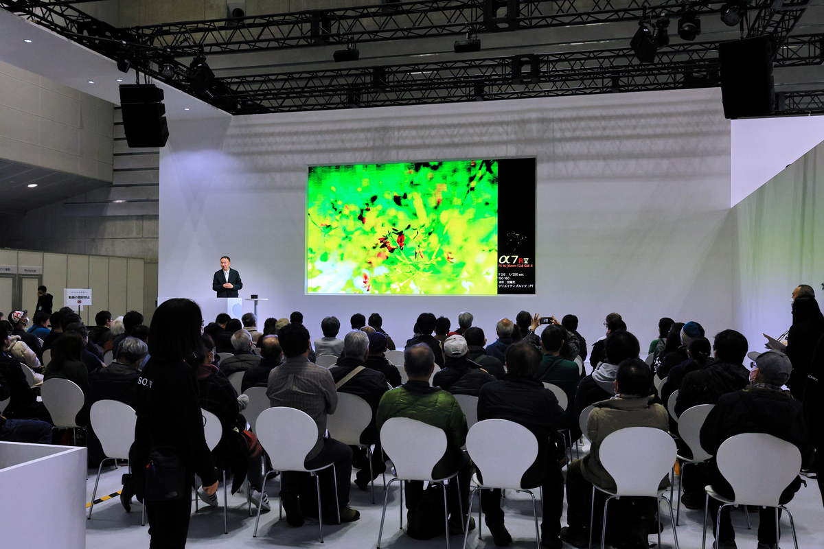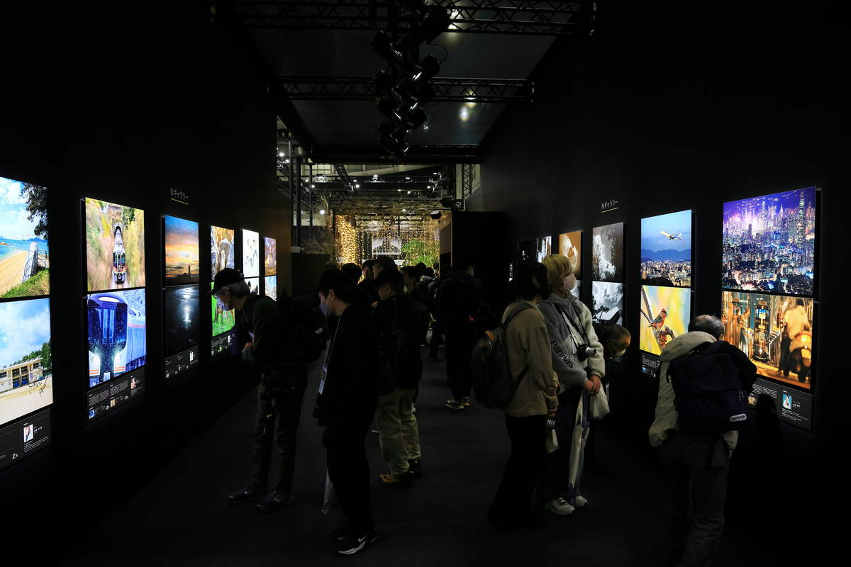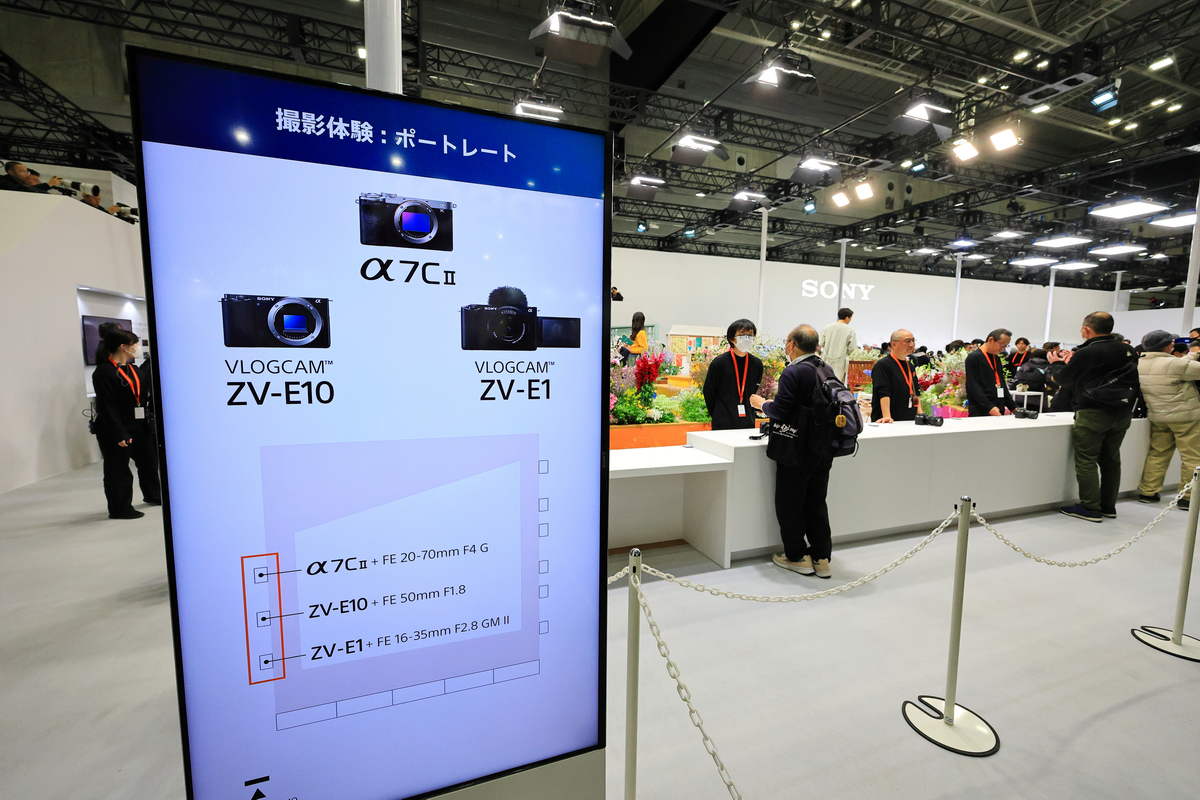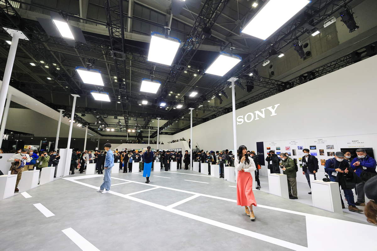 對比Nikon的復古情懷,就在隔壁的SONY則是截然不同展覽風格,首先相當寬敞的長方形試拍體驗區,內部並無任何裝飾,而是由Model像是走伸展台一般,繞行著體驗區提供試用民眾進行拍攝,而在潔白雅致的形象牆高處,則是規畫大砲區讓民眾體驗,整個展覽空間就像是充滿時尚氛圍的一場秀,此外,這次SONY舉辦了以錄影為主軸的分享講座,透過攝影師現場實際拍攝應用,以及後期調色的分享,讓大家能更快速掌握錄影操作的技巧。