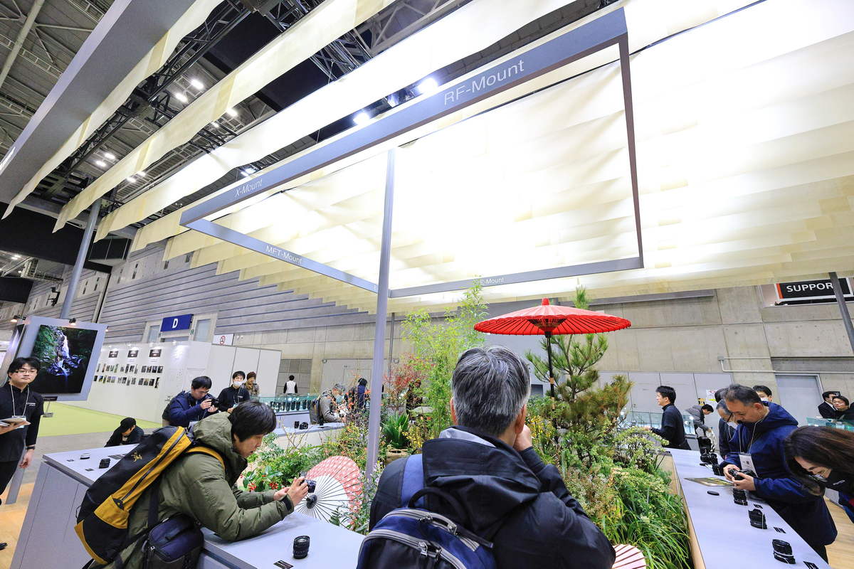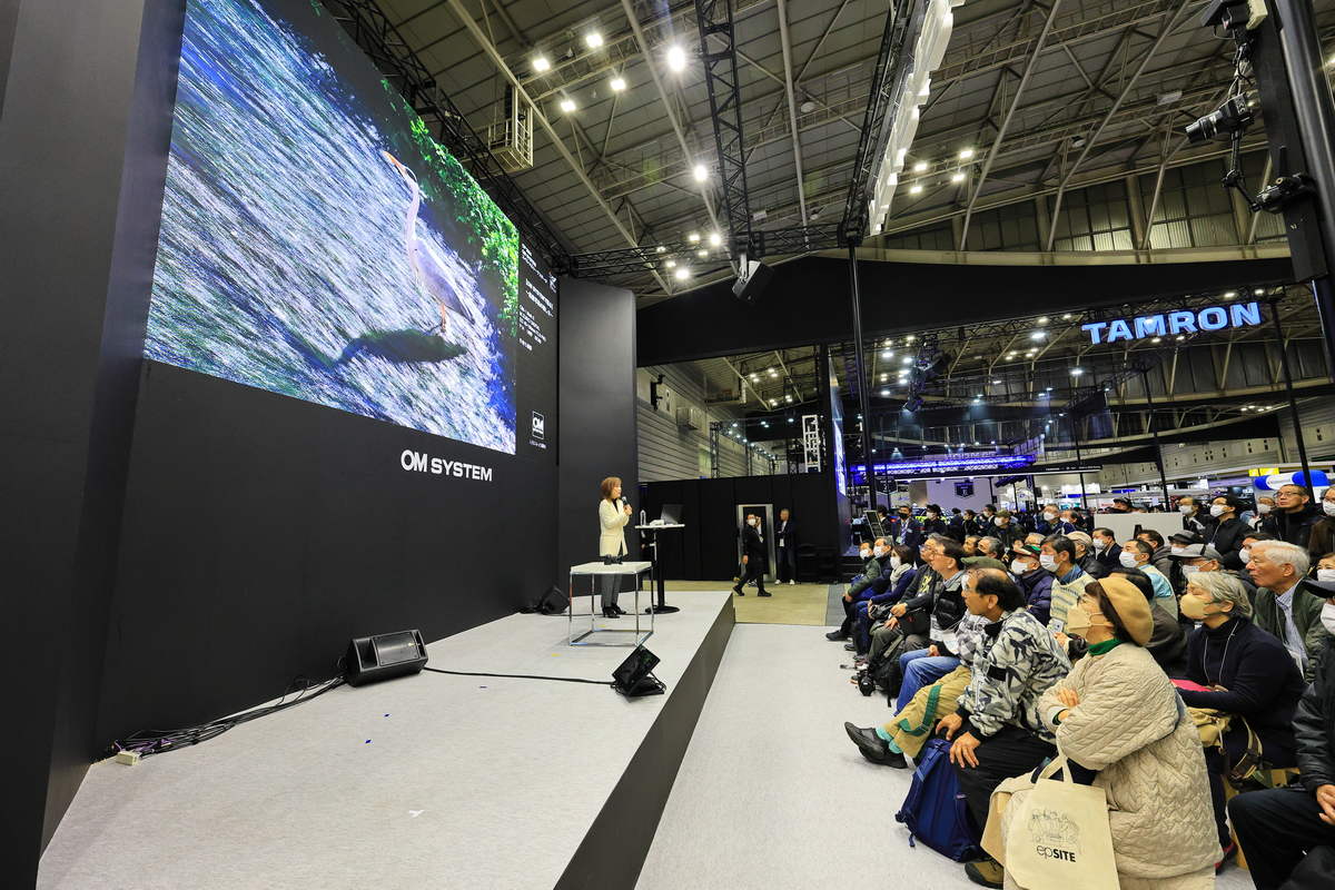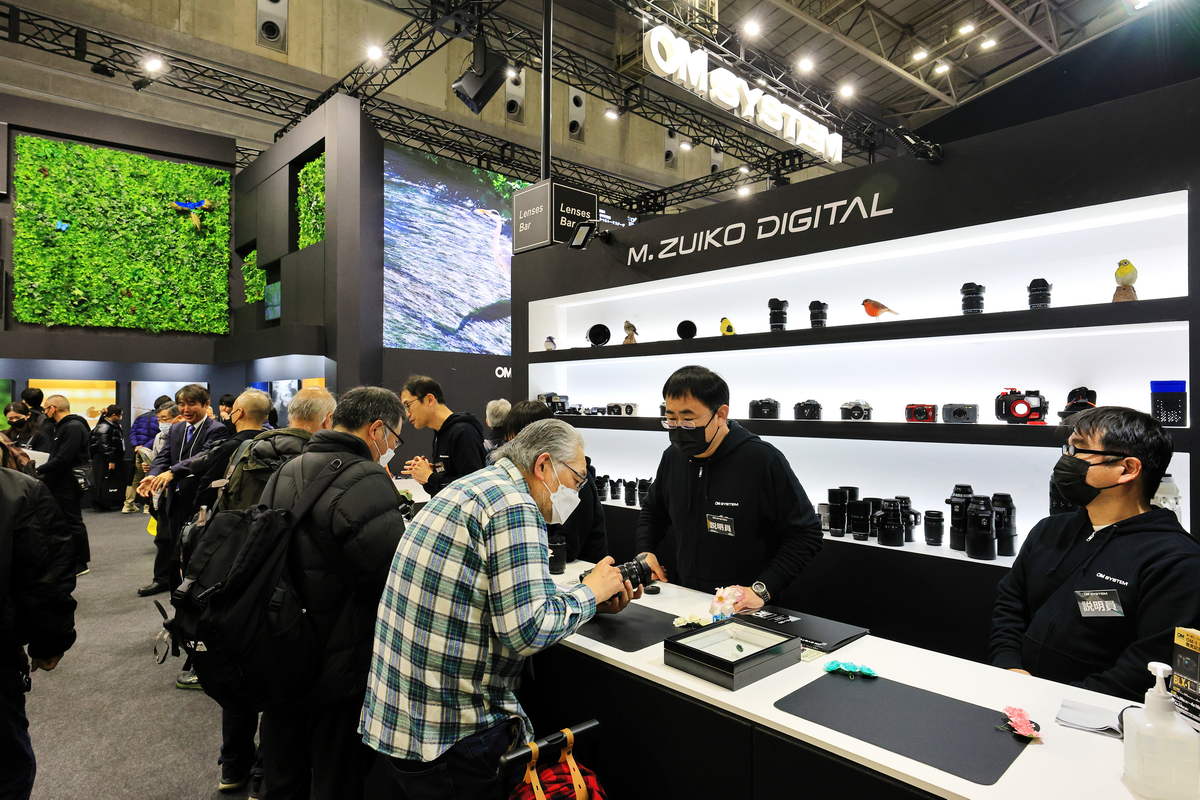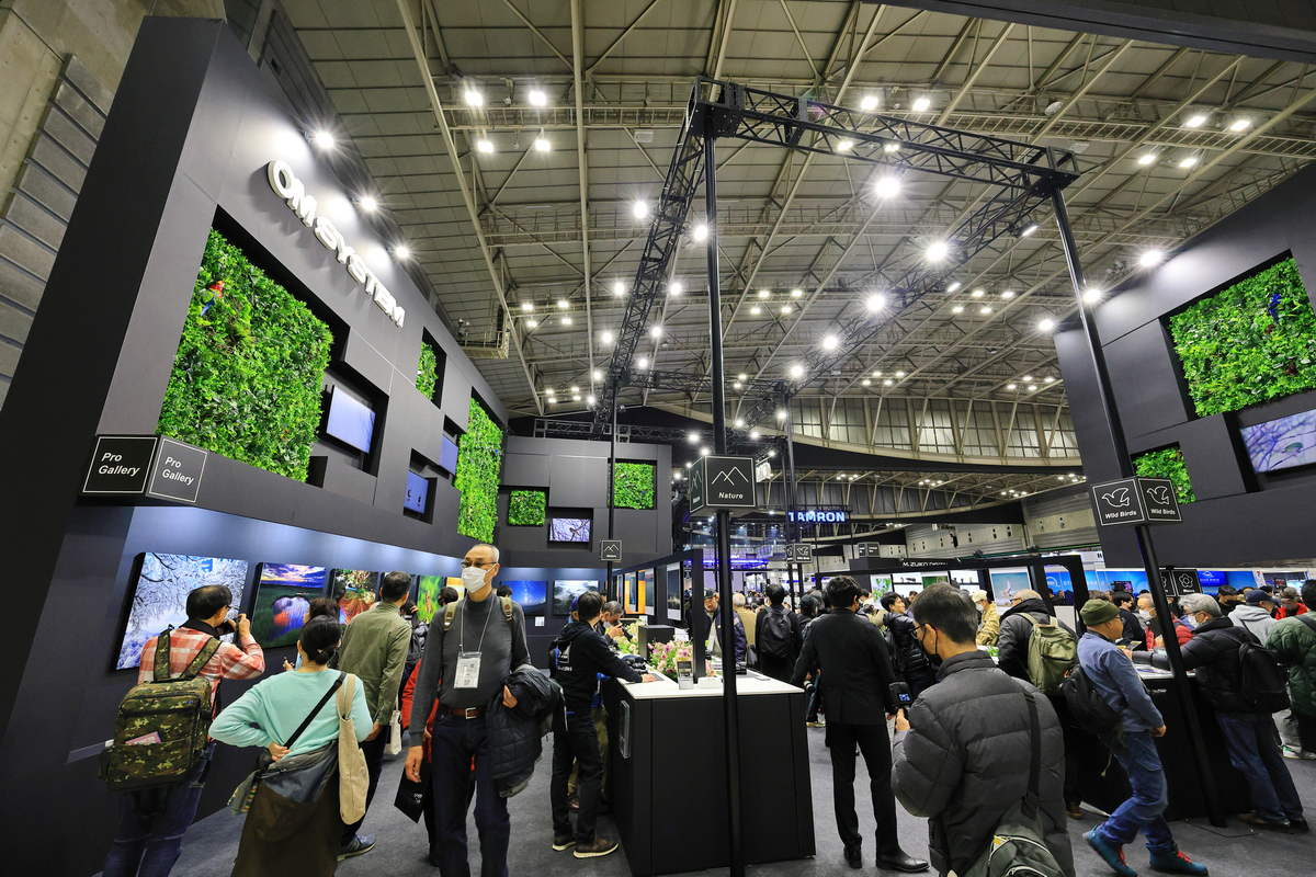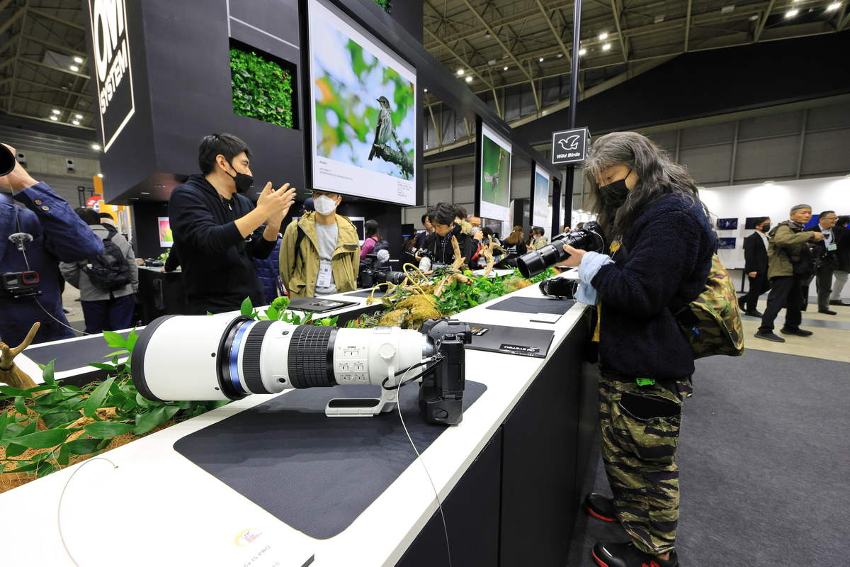 接著,穿過中央走道,走進OLYMPUS展區。這次OLYMPUS以自然生態為展覽主軸,從綠意盎然的造景開始,規劃野鳥飛羽、自然風景、微距生態等體驗區塊,並以該區塊攝影需求特性,配置不同的機身、鏡頭讓參訪民眾進行體驗,此外透過巨幅的攝影作品與攝影師講座分享,串起本次生態攝影的展覽概念。