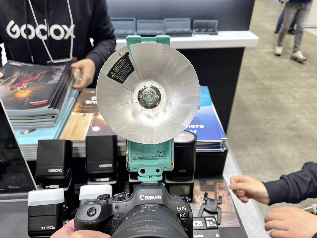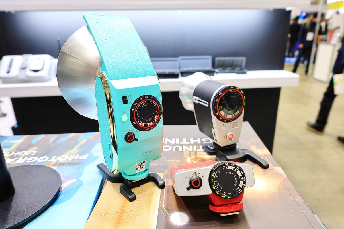 若常使用機頂閃進行活動接案拍攝的旅伴們即知道神牛(Godox)這個閃燈品牌,其不僅提供直接對應各家相機廠機身,並可完整連動機身曝光數據,進而實踐TTL、高速同步、後簾同步等多元功能之外,在需要多燈遠端同步操作的接案拍攝需求中,能隨時調整各個閃燈出力更是相當重要的需求,在這次展覽中神牛的X3 TTL 無線引閃發射器不僅可同步連線多台閃燈,同時透過觸控螢幕直接點選調整,即可讓最遠達100m外的閃燈進行參數上調整,省下折返調整個力氣與時間上的浪費,更是相當方便。此外,不僅專業機頂閃燈可透過多種配件組合達到簡易棚燈的光源需求之外,這次神牛也同步展出造型相當復古卻有著多種色彩組合的機頂閃燈,這些復古造型的閃燈不僅提供相當懷舊的轉盤式出力調整參數,更保有現代科技所需的Auto出力模式,無論接上底片機或是現代相機,都有著相當有型且饒富樂趣的氛圍呢!