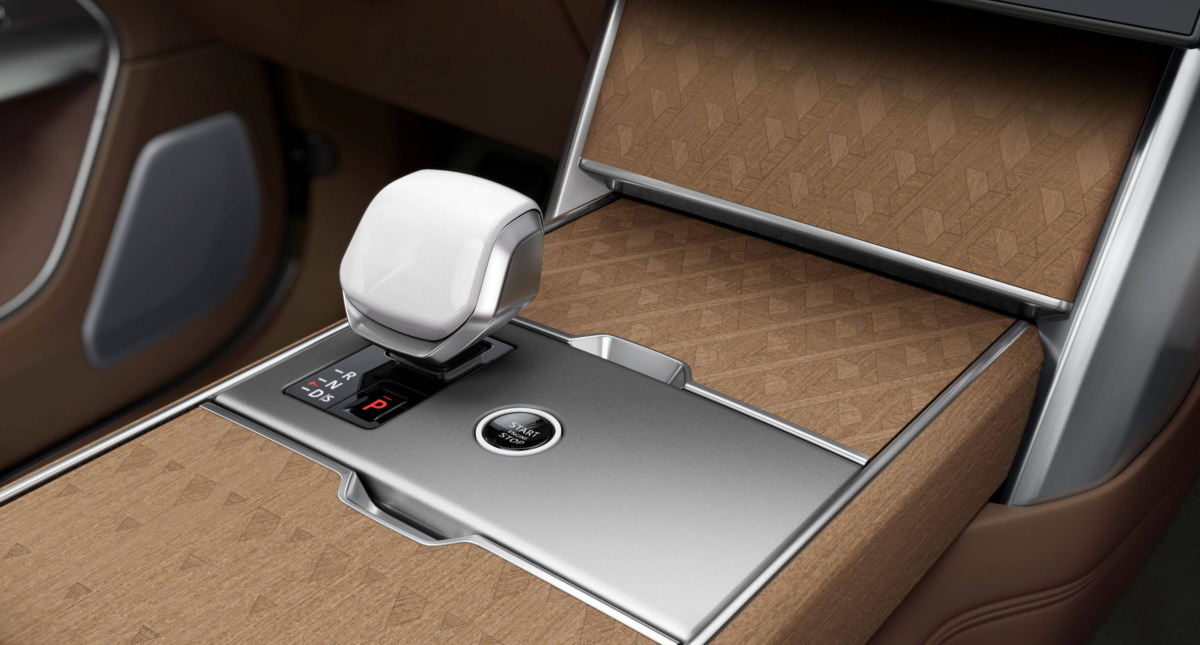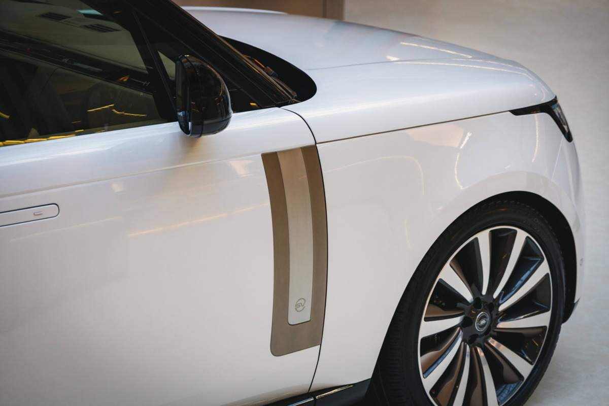 現場展出最新世代 Range Rover SV LWB 車型,外觀選用珍珠白特殊金屬漆結合 SV Serenity 外內觀專屬套件,外觀飾條以科林斯青銅色為主題結合緞銀色與亞特拉斯銀色進行點綴,內裝呼應外觀主題配置,車室採香芹籽棕真皮內裝包覆,雙排座椅採前座香芹籽棕 Near-Aniline leather 近苯胺真皮座椅與後座奶油白 Semi-Aniline leather 半苯胺真皮座椅的特殊雙色調設計,中央排檔座與啟動鍵外環採亮白色陶瓷製成,打造 SV 專屬現代奢華風格。