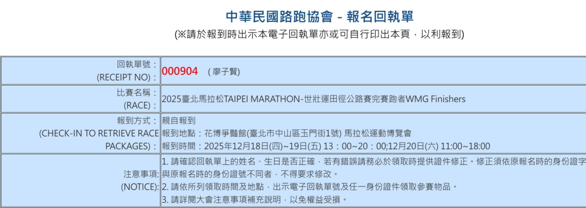 終於等到12/18這天,隨即前往位於臺北市花博爭艷館領取本次臺北馬拉松參賽物資,以及逛逛臺北馬EXPO各個攤位,幫自己補充點所需的裝備與補給品。沒想到,本以為還是上班日的開展首日,在中午12點一到開放進場領取參賽物資已是人山人海的排隊人潮,而在臺北馬EXPO入口處,除了提供參與臺北馬跑友報到領取物資的入口之外,若想先逛臺北馬EXPO各家攤位,晚一點再領取報到物資,也能出示參賽回執單等參賽證明,無限次免費進入一般民眾入場通道,在會場之中先逛個過癮。