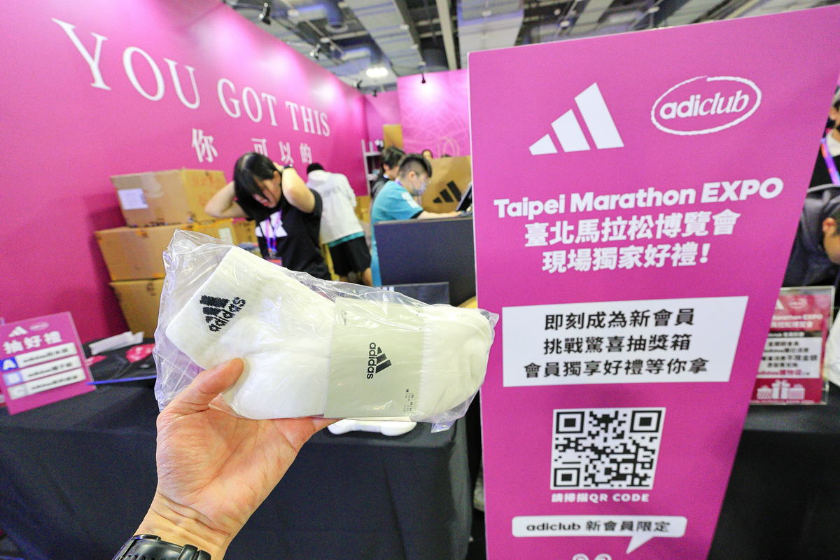 過往參加臺北馬拉松,物資皆以郵寄至家中的我,在這場臺北馬EXPO還真是首次造訪參觀,除了想要感受這場猶如跑者專屬的嘉年華盛事之外,最主要的還是為自己2026的慢跑裝備趁此時博覽會的優惠期好好添購一番,因此首站先來到本次臺北馬頂級贊助商,也是臺北馬EXPO展場最為盛大熱鬧的【Adidas】,趁著全品項7折的優惠,找找接下來的跑鞋!