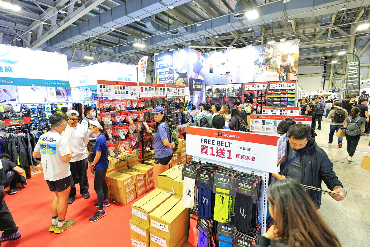 買好了自己想要的裝備與補給品之外,臺北馬EXPO展場內近百家的攤位,更是琳琅滿目的呈顯在眼前,從跑友最為在意自身表現以及帥氣的人身部品,即有各家運動眼鏡、運動耳機、跑錶、衣著、襪子等配件,甚至是跑步旅行的攤位也於此一覽無遺,更特別的是許多跑鞋大廠也能在此提供試穿甚至試跑的體驗,滿足跑友們多元的胃口。