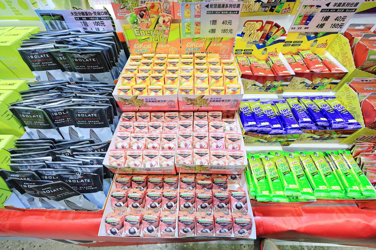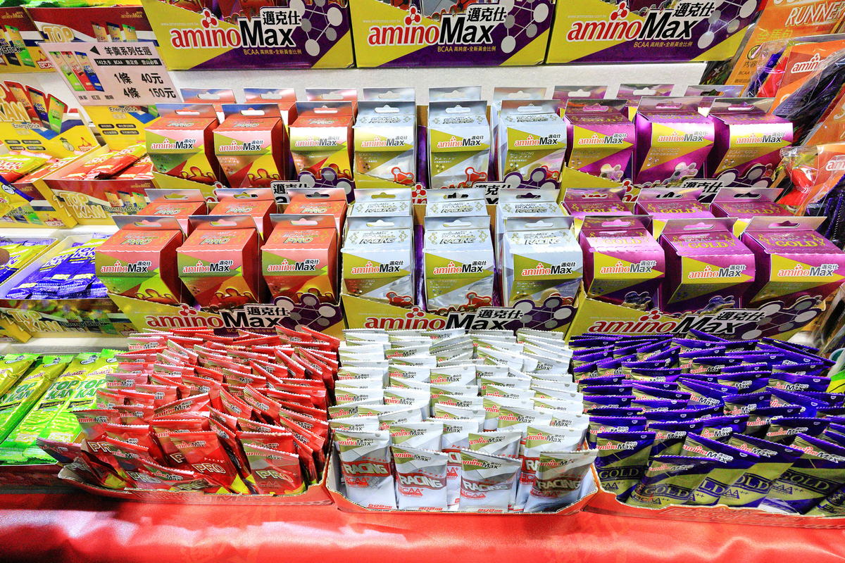 在補給品部分,更像是走在知名的年貨大街迪化街一樣,各家針對訓練準備、參加10k、半/全馬皆有不同的果膠、運動粉包組合可供跑友參考選擇,其中光是走到每個攤位,就提供果膠試吃,真的太像辦年貨準備過年的暨飽足又有趣的感受了。