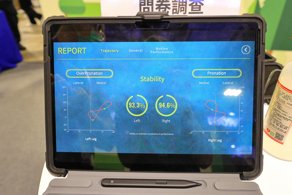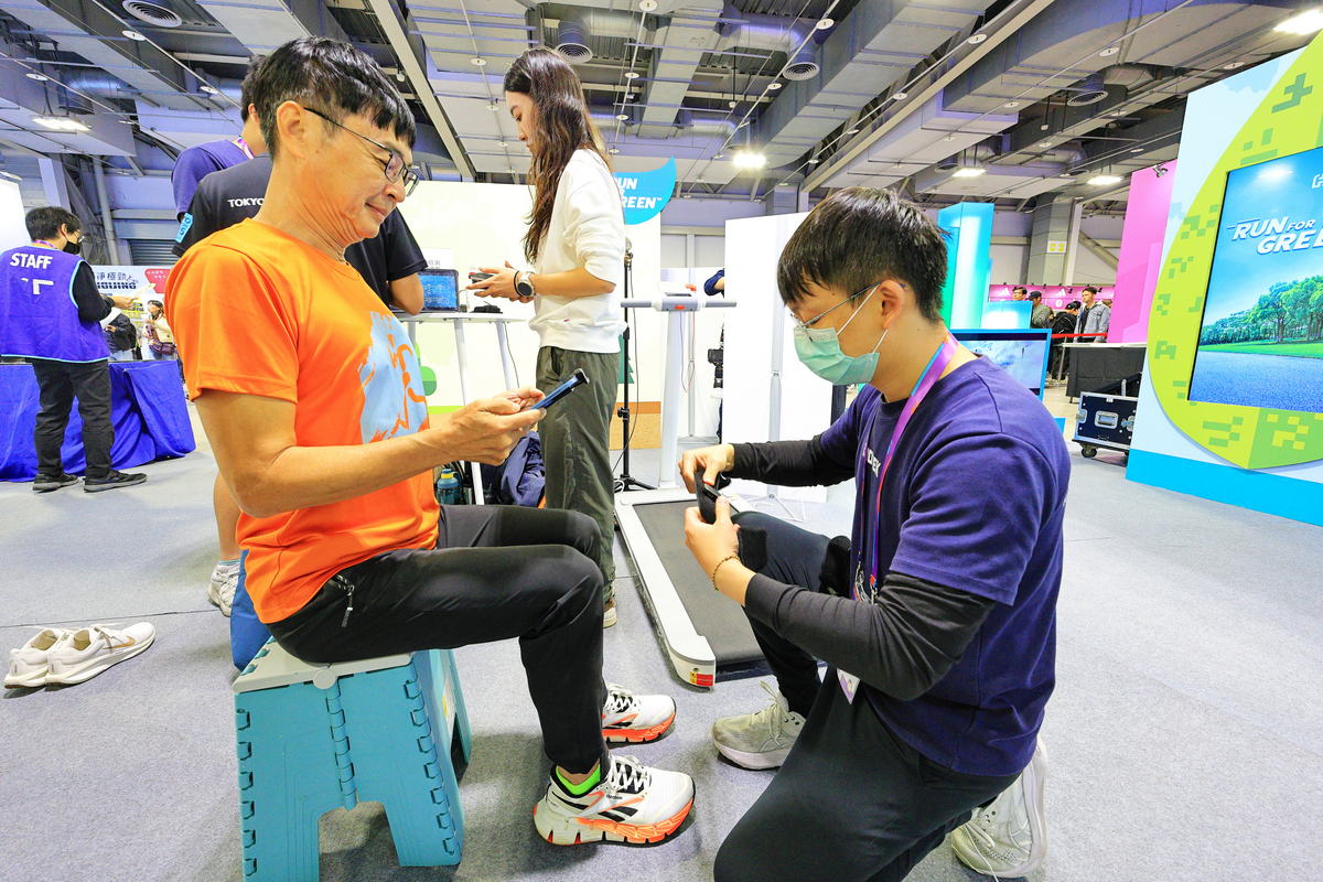 逛了一下午,在眾多攤位中赫然發現一處隱身於提倡Run for Green的富邦金控攤位,富邦金控除了鼓勵跑友們參賽之餘,透過富邦贊助四大馬拉松中任選場次,總計完成 40 公里賽程,即可選擇關注的環境議題和種植地點,兌換一棵您的專屬樹苗進行植樹之外,這次在攤位上設置了跑姿分析儀,讓跑友們透過科學化儀器的檢測輔助下,更為精準地了解自己雙腳跑動時的步頻、穩定度,甚至是支撐身體重量的雙腳重心比例,以及雙腳型態是為外旋、內旋或是像我有著一腳“過度”內旋、一腳內旋的不同型態,同時藉著現場分析人員的講解,了解自己雙腿可能因為身體構造的先天問題,進而去注意左右腳平時行走、跑步發力,甚至是日後選購適合的跑鞋、鞋墊等實用且健康知識呢!最後!臺北馬EXPO現場還有維持肌力表現或促進肌肉恢復功能的肌內效貼紮體驗,對於許多跑友們想要在臺北馬拉松有著最佳表現的需求,更是一大熱門攤位,同時也為這次臺北馬EXPO劃下完美的句點,迎接12/21的臺北馬挑戰。
