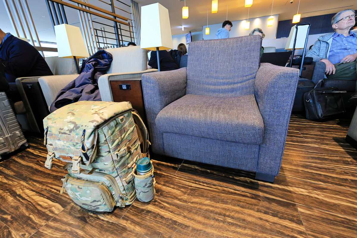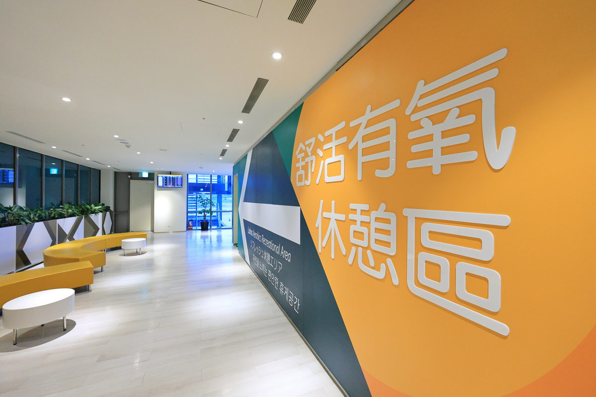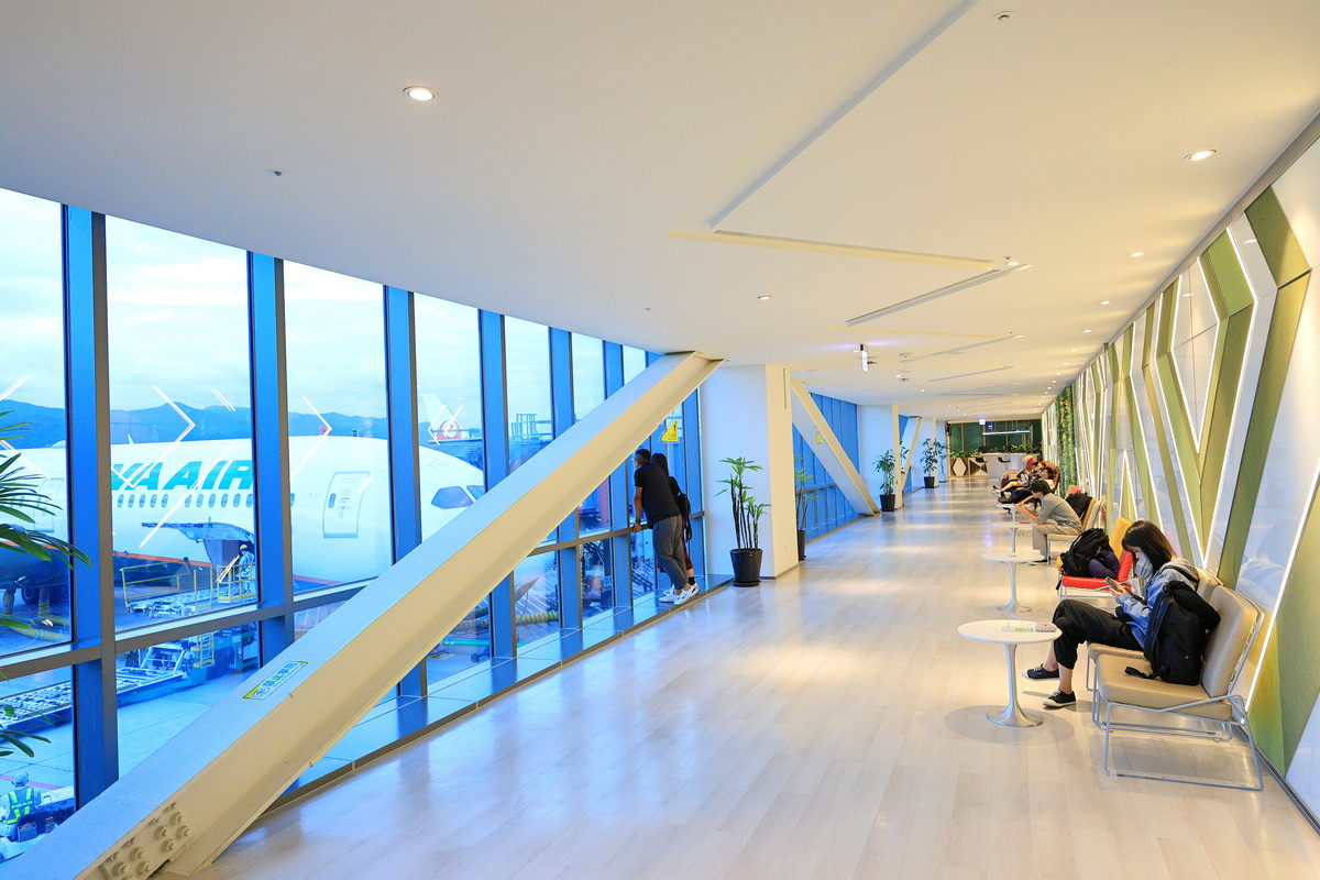 在機場報到櫃檯排隊等待約莫15分鐘後,即可完成行李托運與領取登機證,此時隨著電扶梯走上2樓快速通過海關安檢後,距離登機時間還早,同時剛好有機會進入松山機場的“聯合貴賓室”,因此能在這段需要片刻寧靜的早晨,在寬敞舒適的貴賓室中,安靜地享受簡單早餐、熱飲,愜意地等待登機時間到來真是種享受呢。不過就算沒有貴賓室,只要出發前帶著喜歡的食物、茶包或咖啡粉以及空的保溫瓶,在通過海關安檢後,走向候機空間面向機場的“舒活有氧休憩區”,也能在此裝上一壺熱水進行茶/咖啡的沖泡,同時找張舒服的椅子或按摩椅,吃著早餐欣賞窗外準備起飛的飛機呢!