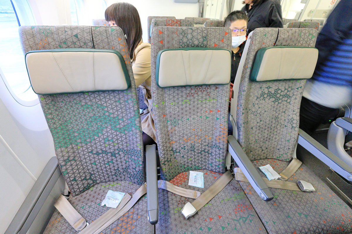 等到登機時間,進入機艙後,這次因為來不及選位,因此坐在機艙右側的“K排”靠窗座位,只能說可惜這次無法像過往一樣,去程坐在左側的“A排” 靠窗座位,欣賞窗外日本島嶼海岸線與富士山交織的美景了。