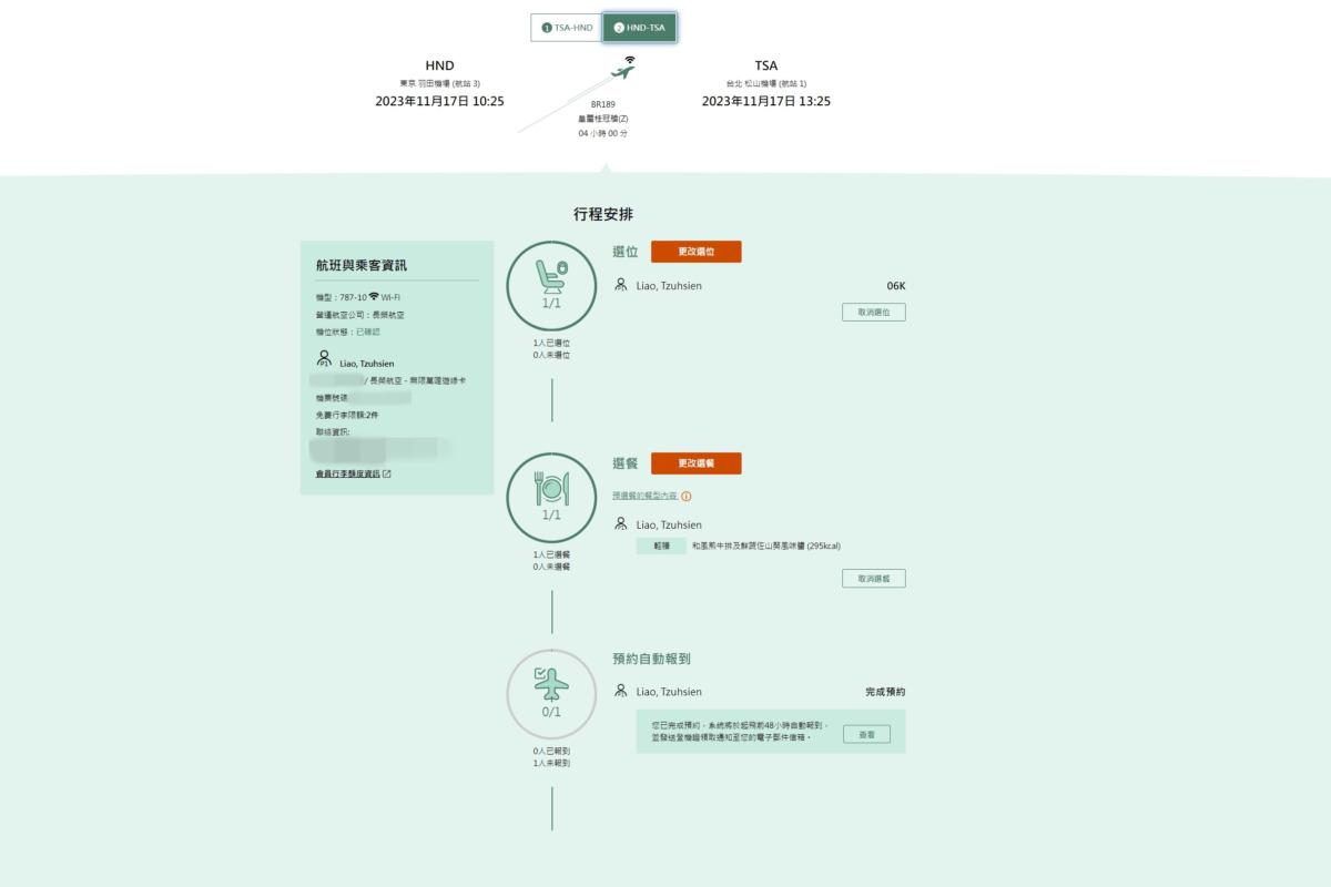 去程前往東京時體驗了搭乘波音787-10經濟艙的愜意感受,回程從東京羽田機場返回台北松山機場前,特別想再感受商務艙等級的皇璽桂冠艙與先前搭乘波音777-300ER之間有何不同?於是打開長榮航空官方網站的“里程兌換”專區並進入“艙位升等兌換”網頁中,而787-10在無配置豪華經濟艙的狀態下,長榮航空在往返東京這條東北亞航線中,依照經濟艙買票時不同艙等的票價(經典/尊寵),進而升等至皇璽桂冠艙所需的里程僅1.2-1.5萬哩,因此只要利用這少少的里程,即可從經濟艙升等單程價差超過1萬元的皇璽桂冠艙,同時還能享受羽田機場的快速通關、貴賓室,以及飛機上能“平躺”休憩的寬敞舒適獨立空間、精緻酒水餐點的服務,相當划算呢!