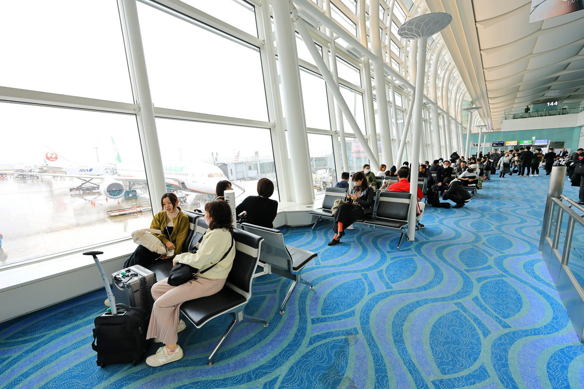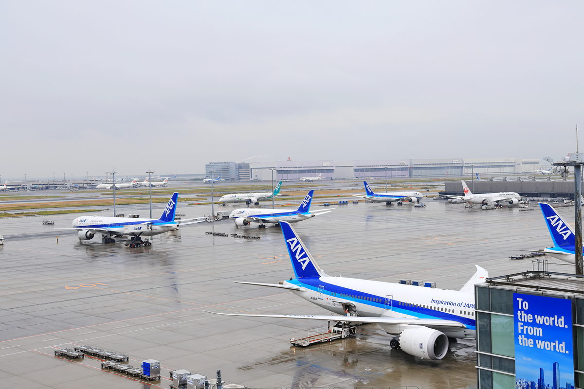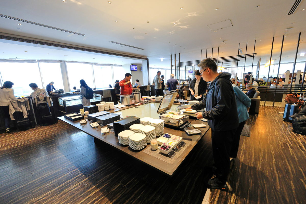接著本想在進入海關安檢之前,在觀景台欣賞富士山以及飛機起降、停靠停機坪的景色,無奈此時正下起滂沱大雨,看來這次回程無法在空中一窺富士山的雄偉姿態了。面對這樣的天氣,於是決定通過海關安檢後,直接前往同為星空聯盟成員的全日空貴賓室吃些餐點,休憩片刻等待登機。