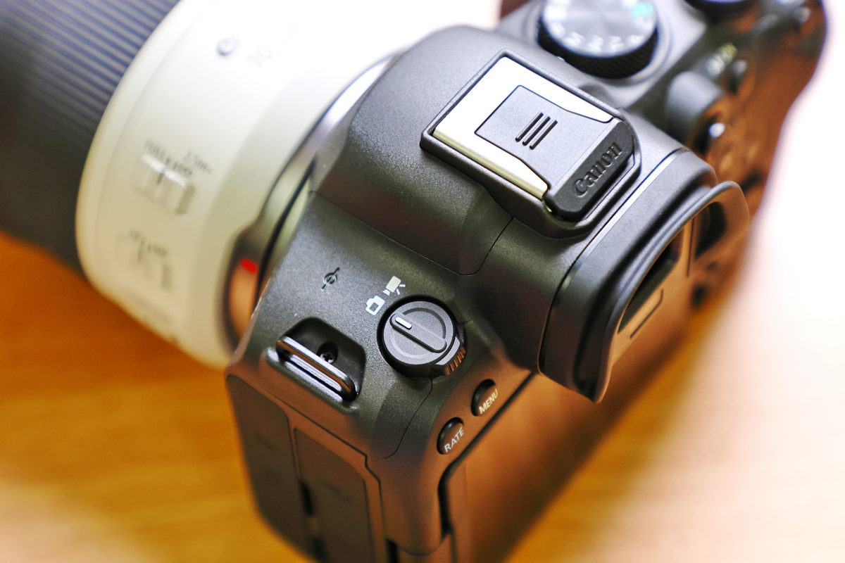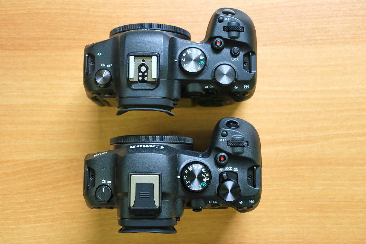 對比第1代Canon EOS R6(上),Canon EOS R6 Mark II(下)將機頂左側改為拍照/錄影切換,同時電源開關與Lock功能整合於拇指處的速控轉盤中。