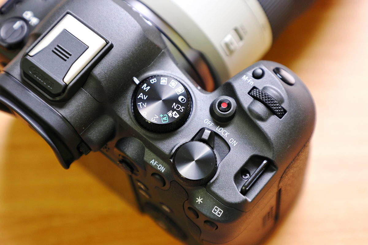 Canon EOS R6 Mark II機頂右側除了電源開關、Lock功能之外,模式轉盤上新增了全自動、混合場景、SCN(特殊場景)、創意濾鏡等入門相機特有的模式,不僅入門玩家更能快速上手,同時也增添更多靈活拍攝創意彈性。