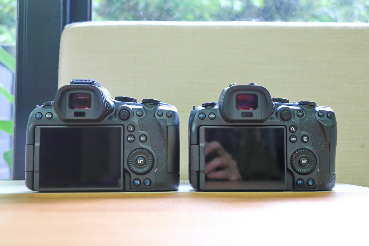 在機背的設計佈局上,Canon EOS R6 Mark II(左)與Canon EOS R6(右)並無明顯差異,僅多功能控制器以更圓滑的服貼設計,讓拇指操作更舒適。