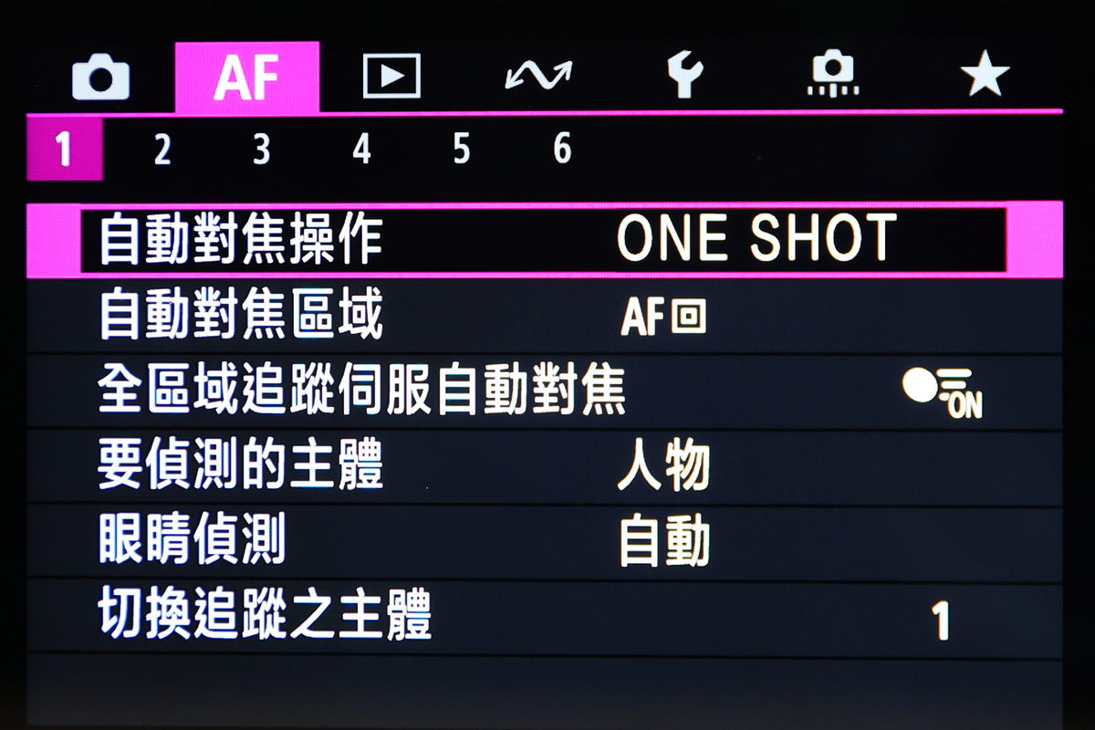 在選單中能依照拍攝的主體進行對焦偵測,也能選擇自動功能交給相機進行偵測。