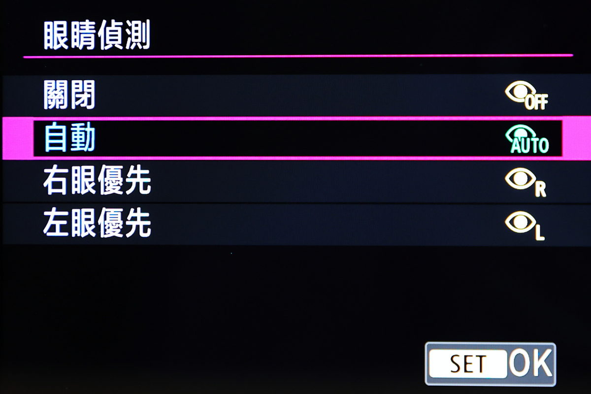 在Canon EOS R6 Mark II眼睛偵測功能新增左右眼優先偵測對焦功能。