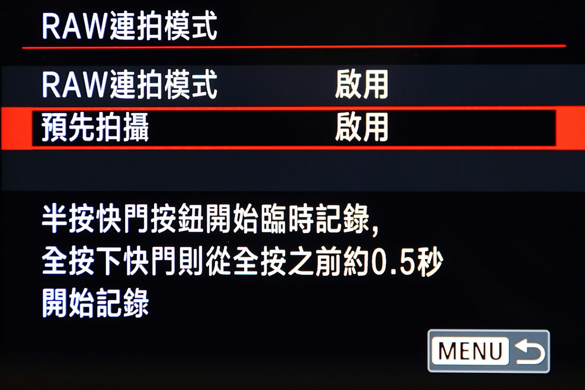 同時再開啟預先拍攝,如此一來再半按快門對焦至完全按下快門的區間,Canon EOS R6 Mark II已經先行拍攝。