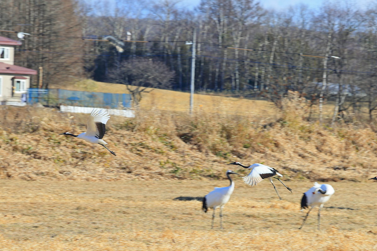 因此當開始看到丹頂鶴助跑準備起飛時,相機已經準對焦,同時拍下起跑瞬間。
