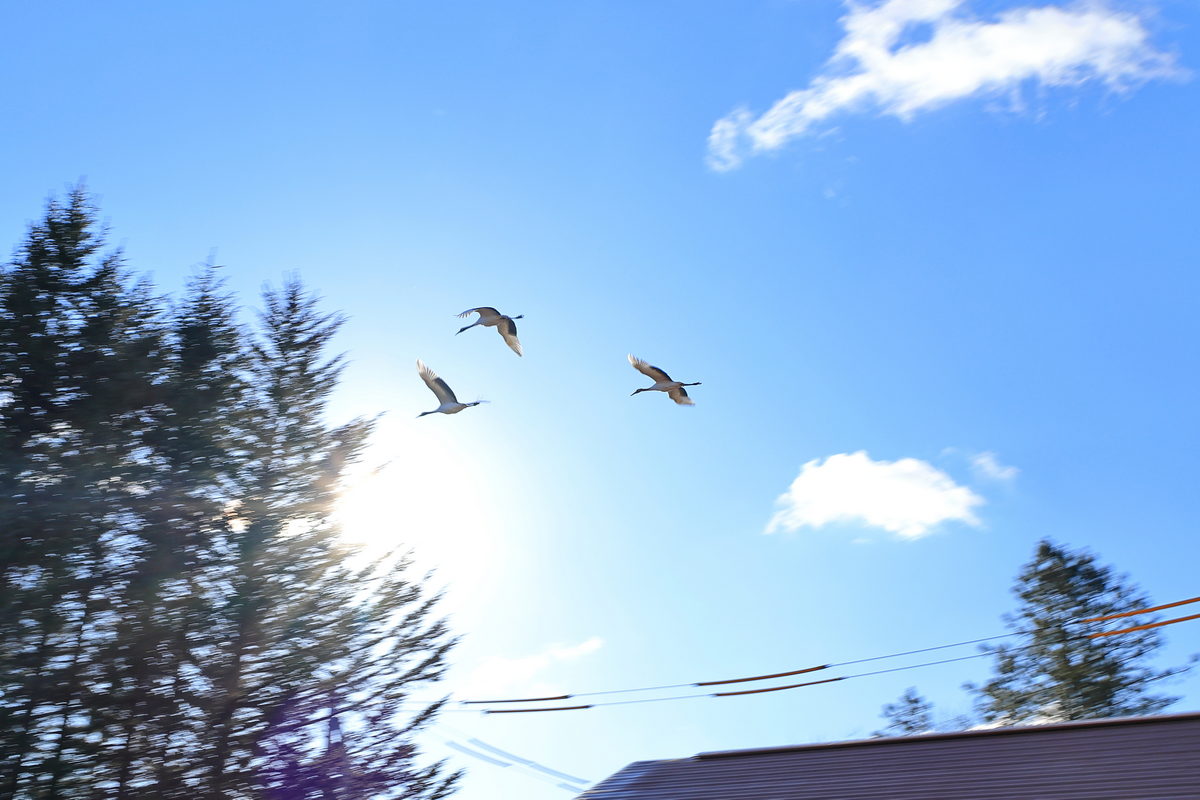 在民宿抬頭就能欣賞丹頂鶴飛舞滑翔,相當夢幻。