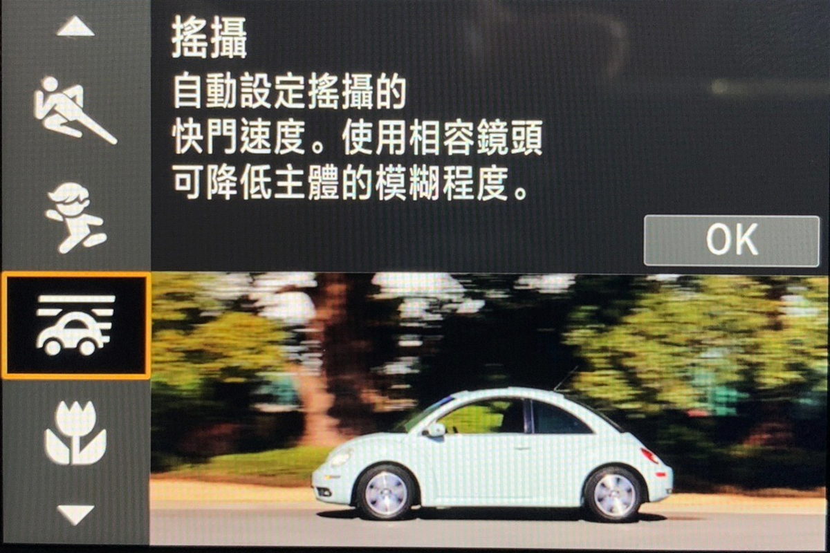 若對於拍攝追焦設定操作不熟悉,沒關係,Canon EOS R6 Mark II的SCN(特殊場景)中搖攝模式,已為你完成所有繁雜的設定。