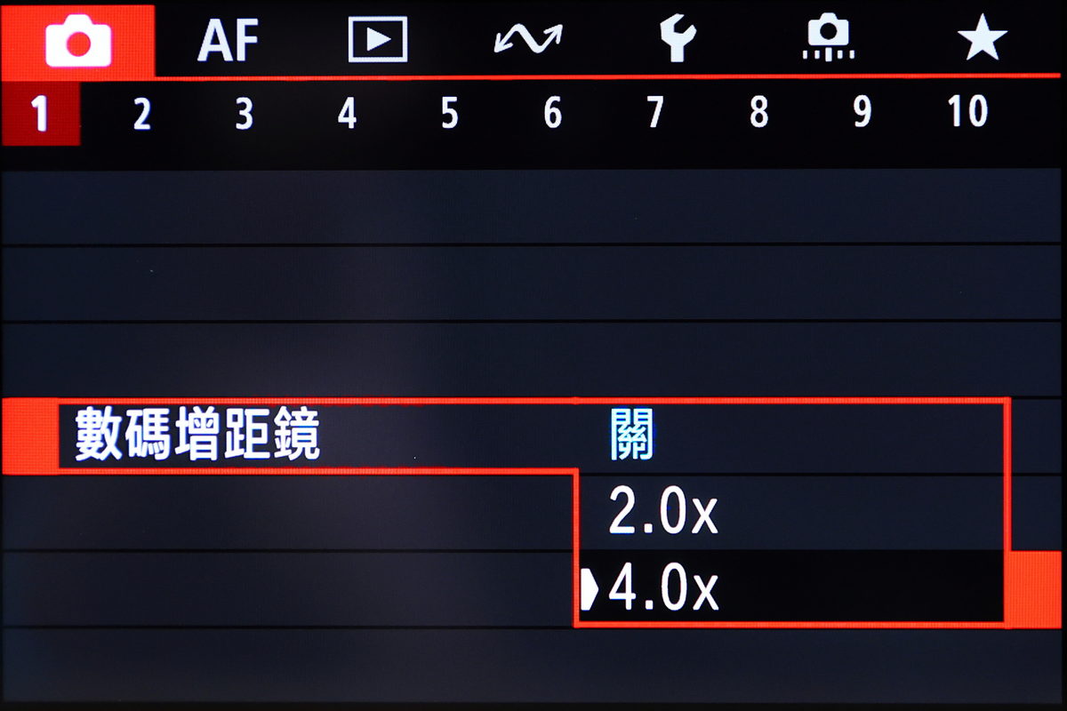 在數位增距鏡模式下,能啟用2.0x、4.0x兩種倍率。