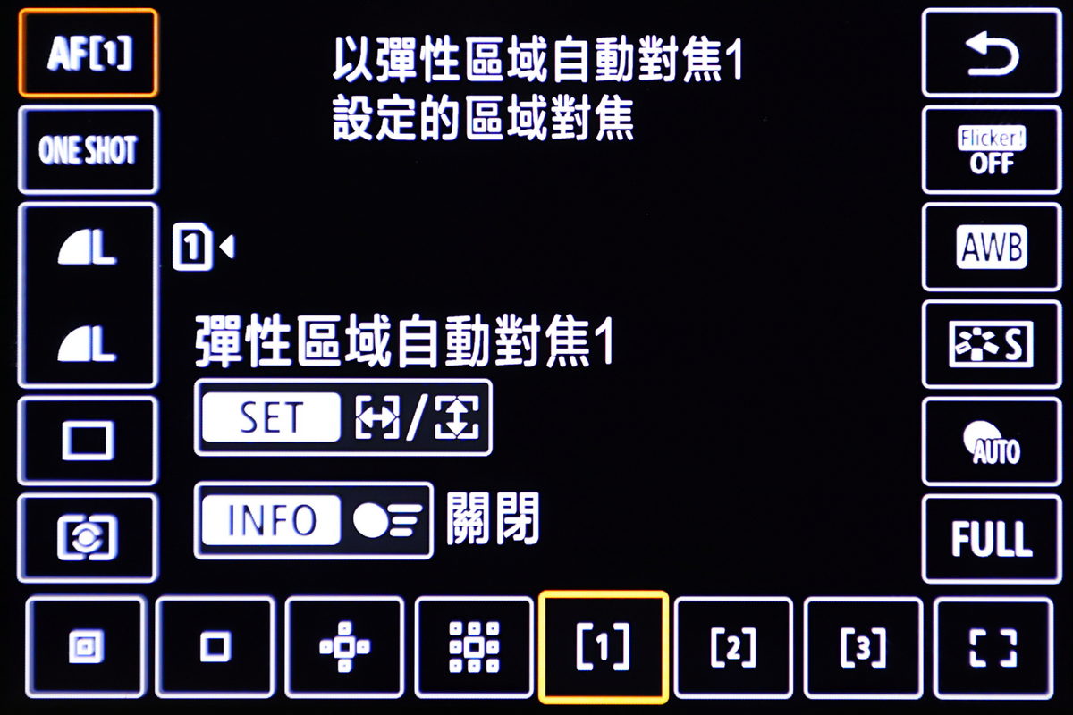 在對焦點選擇中,Canon EOS R6 Mark II提供與Canon EOS R3相同的(彈性自動對焦區域)共3組。
