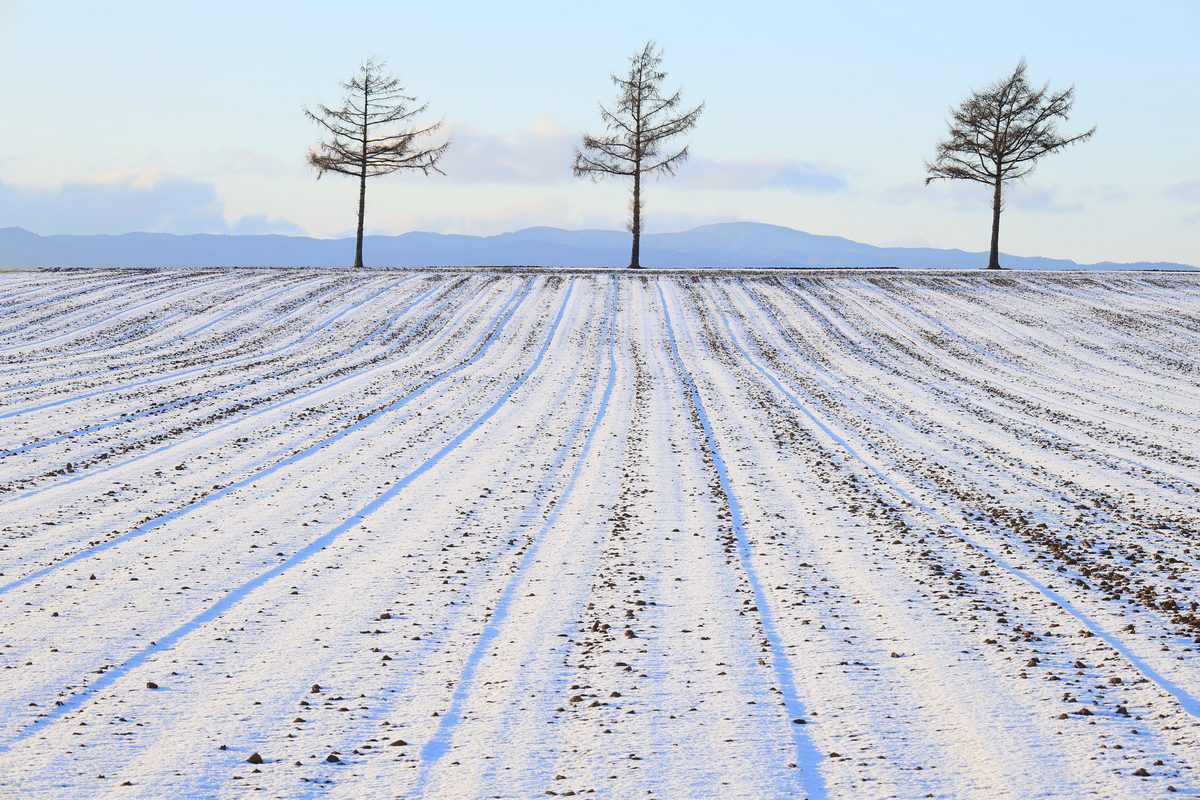 位於網走的童話之丘不僅是知名景點,透過冬季夕陽光灑落於雪地的色溫更是夢幻。