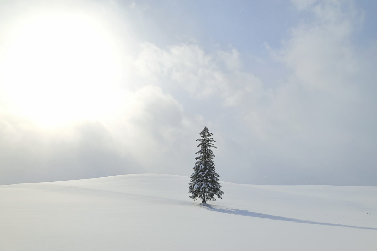在終日下著大雪的美瑛,在我們抵達美瑛聖誕樹的那一刻,雲層飄散短暫露出陽光的片刻,把握這黃金的片刻拍下這絕美的風景,而Canon EOS R6 Mark II將其層次細節完美的呈現,真是太棒了!
