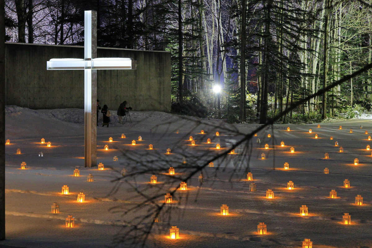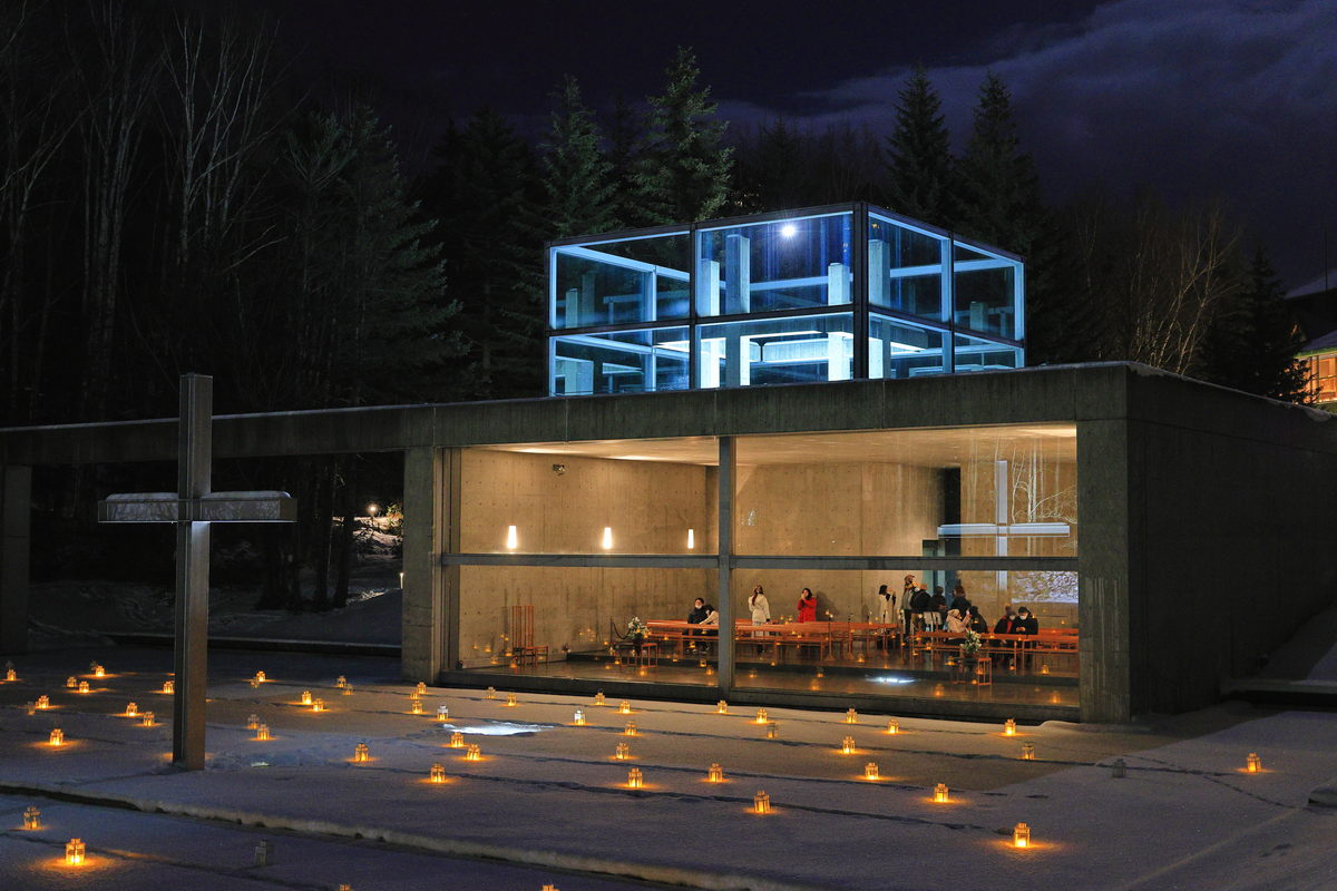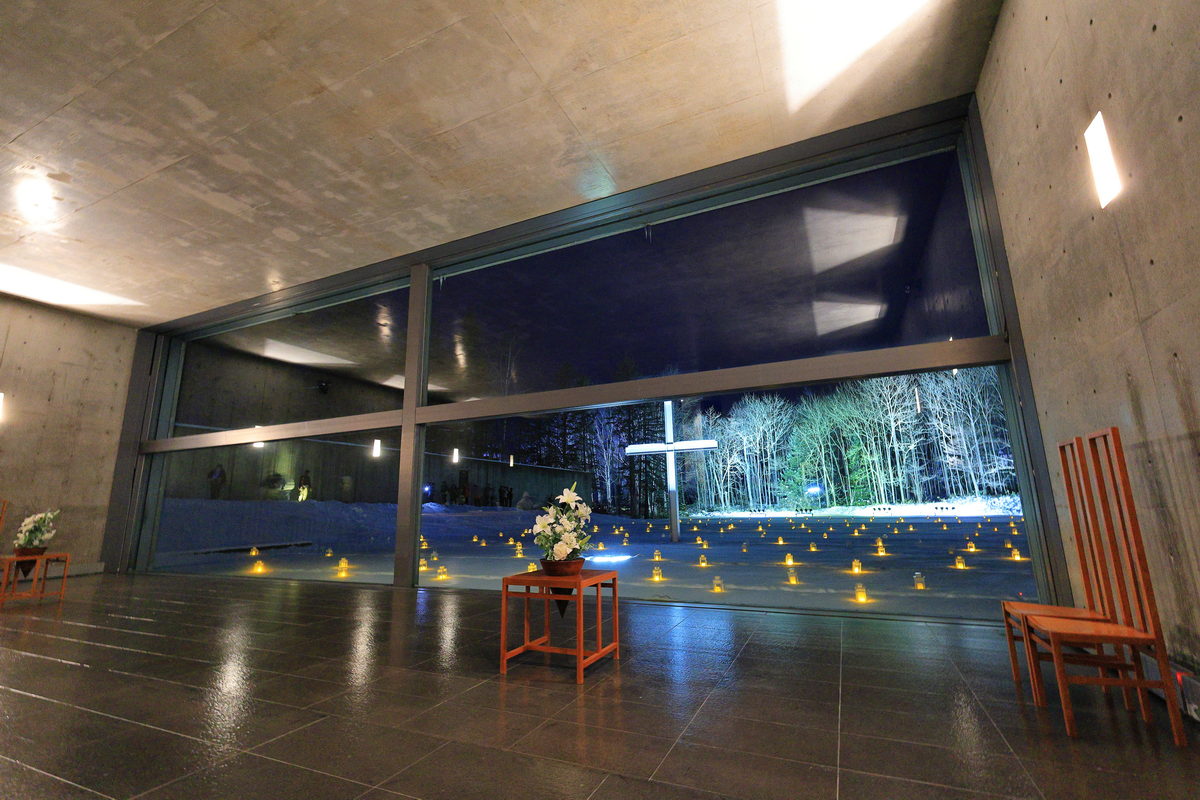 內建機身防手震的Canon EOS R6 Mark II,放心的拉高ISO吧,純淨的畫質,穩定銳利的相片品質,更能感受夜裡水之教堂內外的寂靜氛圍!