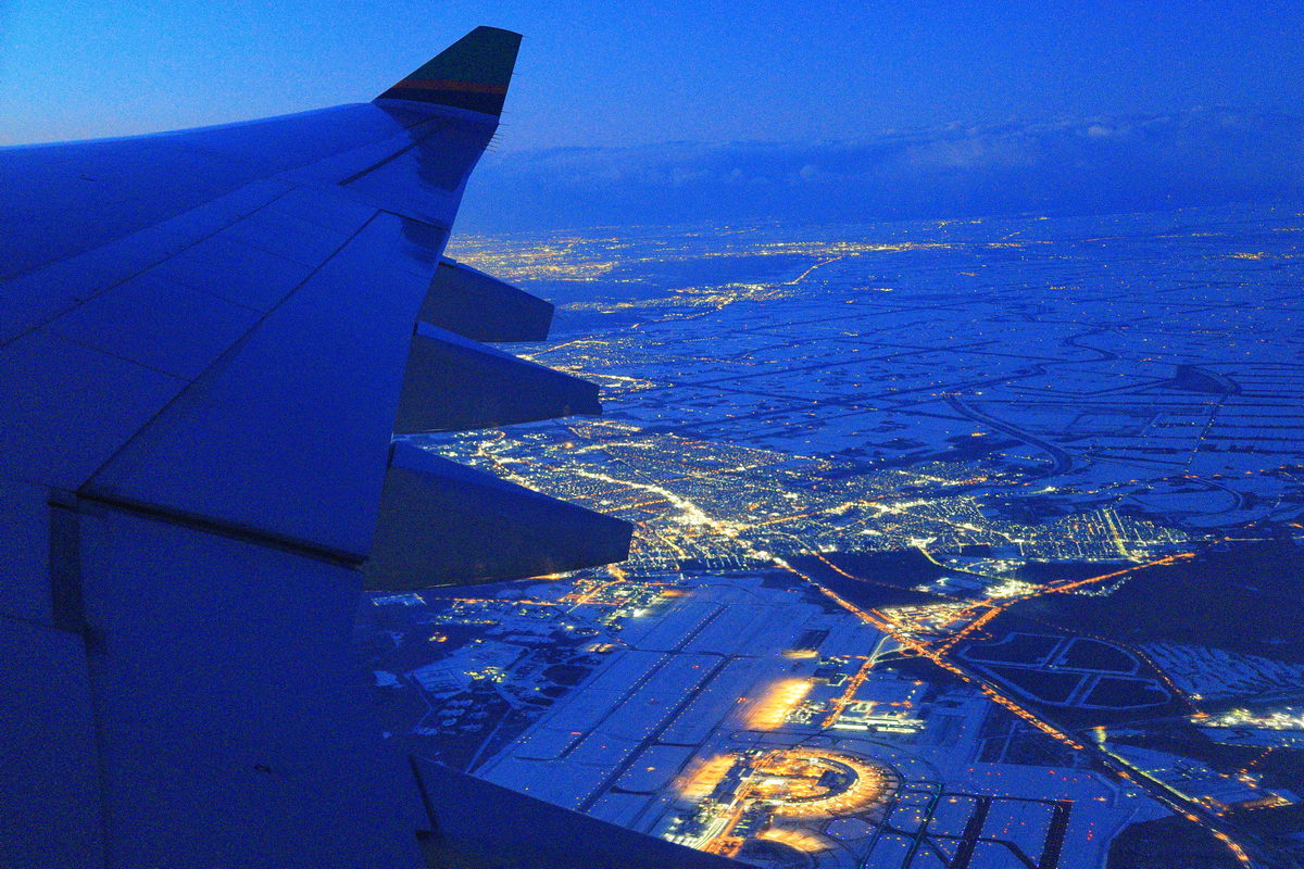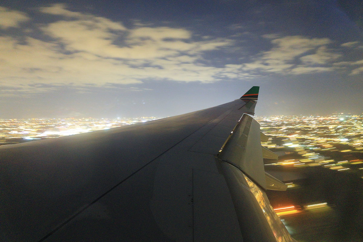Canon EOS R6 Mark II的機身防手震穩定性與高ISO的純淨表現,讓傍晚搭機起飛時,能在慢速快門下拍攝清晰的俯瞰夜景。
