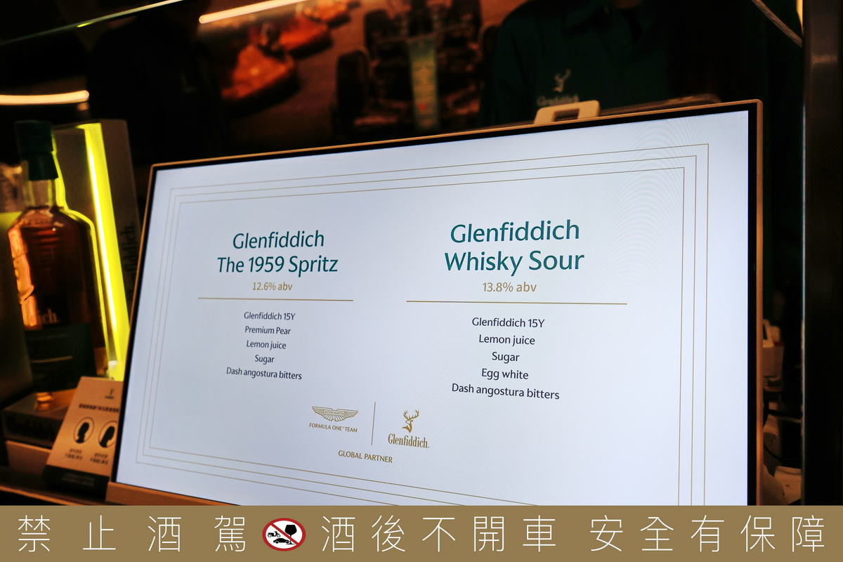 現場提供兩款以格蘭菲迪15年為基酒的Glenfiddich The 1959 Spritz、Glenfiddich Whisky Sour調酒。