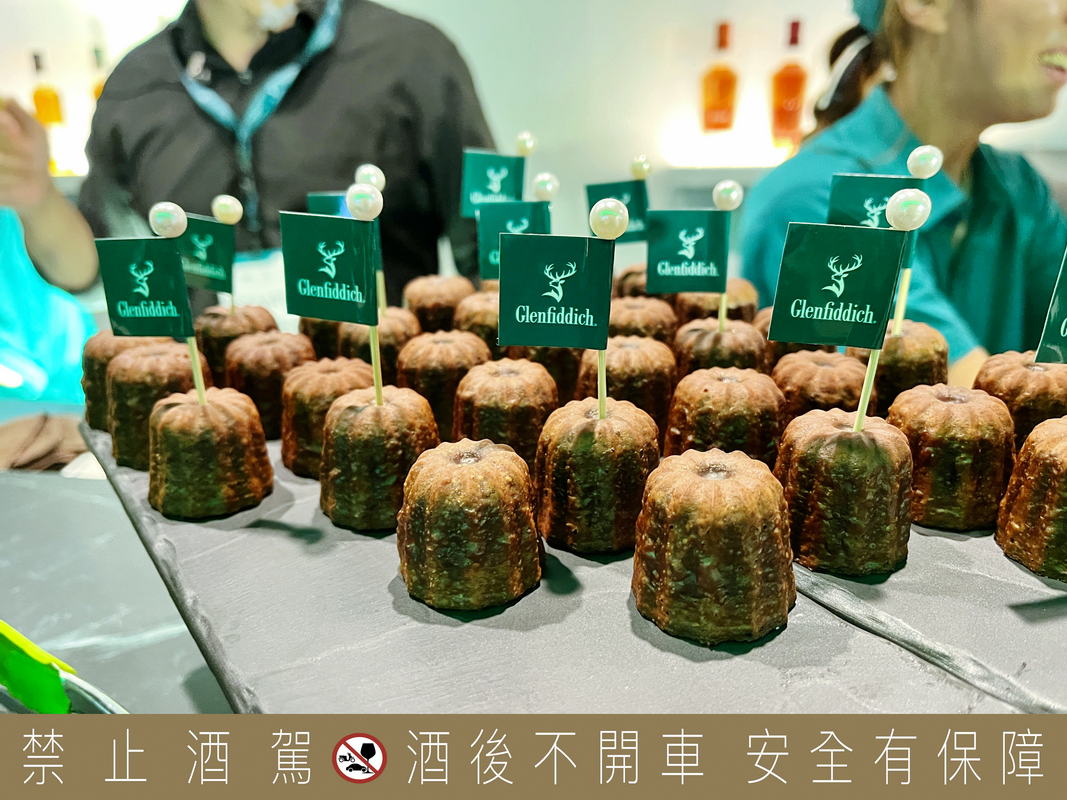同時也因為這杯開香甜爽口的開胃酒,開啟了我嘴饞的食慾,於是進入快閃店之中尋覓些小食,就在快閃店內,眼前以賽車綠勾勒紳士金邊的吧台,擺滿著可麗露、馬卡龍、番茄乳酪等甜鹹食可供與會貴賓品嚐之外,從吧檯與一旁以沙發所營造的品酒空間,則以本次活動主軸酒款【格蘭菲迪16年單一麥芽蘇格蘭威士忌ASTON MARTIN FORMULA ONE® TEAM聯名款】作為像是極為私密VIP品酒空間的充滿典雅質感,即便不品酒,在此拍些優雅的品酒照片打卡分享,也是恰如其分呢!