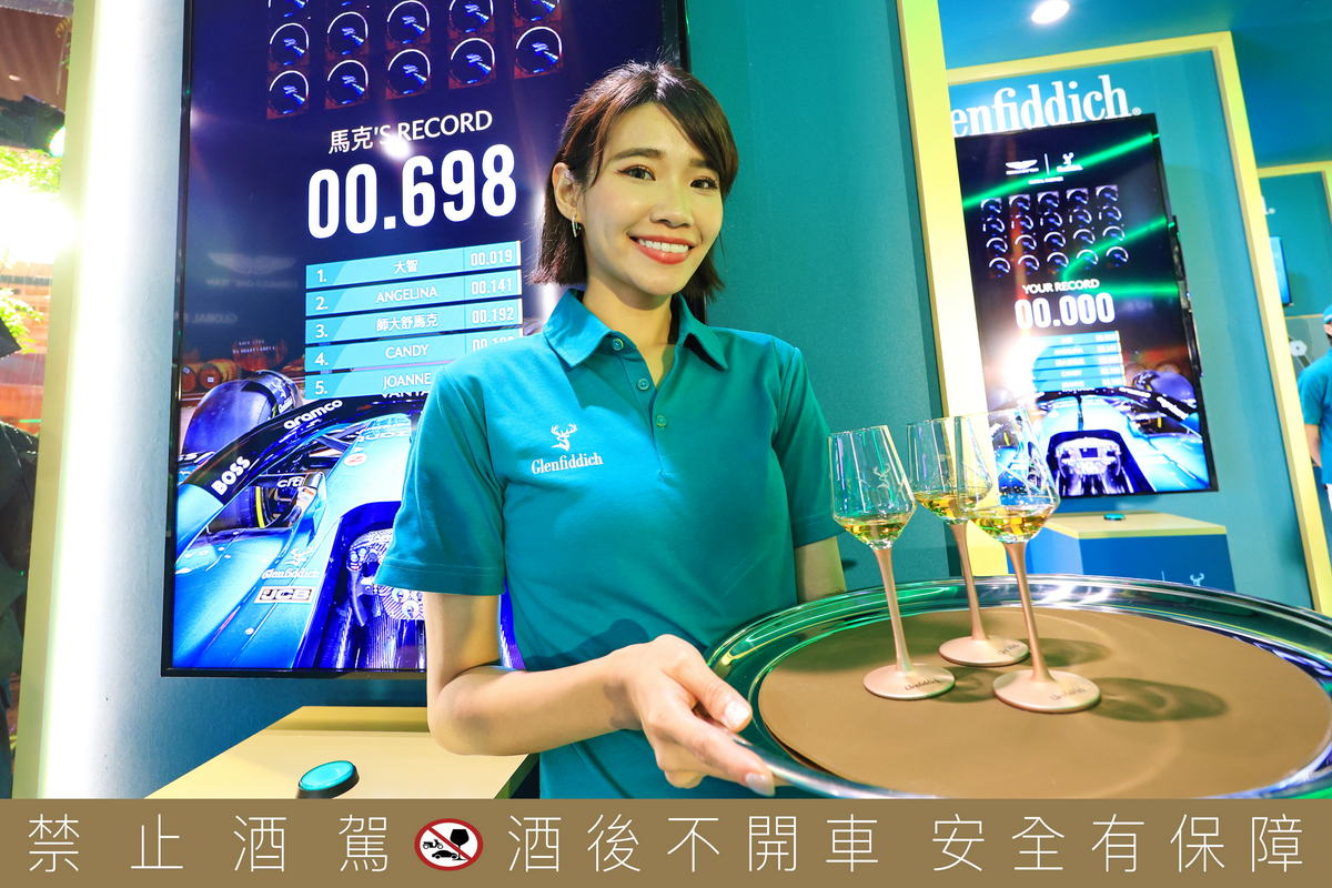 此外延續著Aston Martin Formula One® Team追求極速的精神,現場有著知名F1車賽主播Robin“燈滅起跑”的經典口頭禪,一同掌握最佳起跑時機的瞬間,以及以英國銀石、新加坡賽道路線鋪設而成反應燈號的小遊戲,讓大家藉此感受身為F1車手驚人的反應與專注力,而完成挑戰和分享即可獲得50ml格蘭菲迪12年,突破門檻者更可獲極具臨場感的限量專屬「車手識別證」呢。