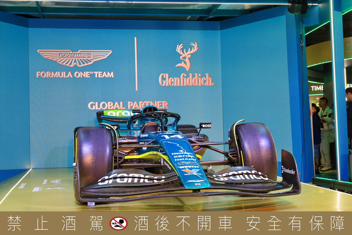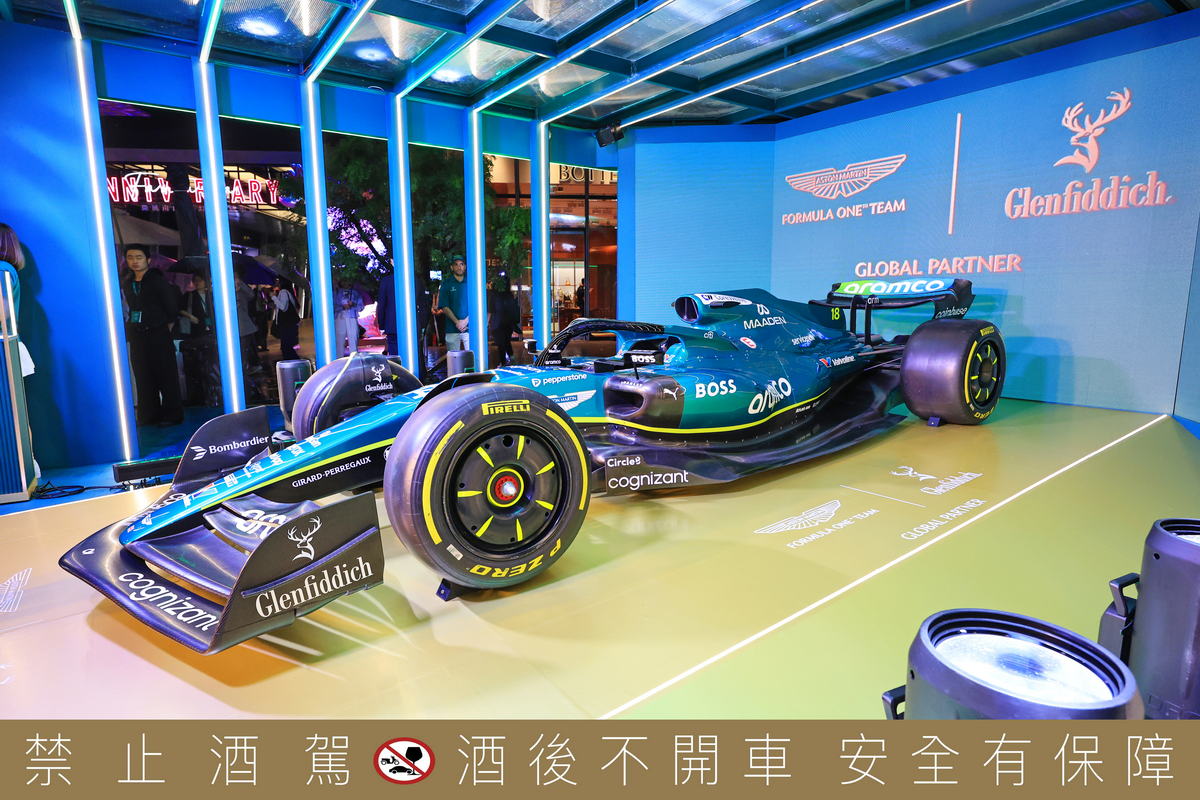 本次快閃店不僅發表全新的格蘭菲迪16年單一麥芽蘇格蘭威士忌Aston Martin Formula One® Team聯名款,同時帥氣的Aston Martin Formula One® Team Replica Car也在布幕下等著一同登場。
