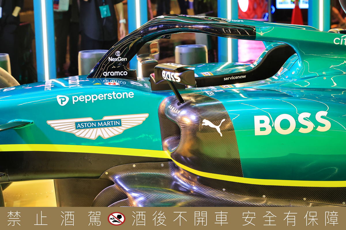 這部F1賽車雖然是作為巡迴展演的1:1複製車,並非Aston Martin Formula One® Team車手參賽的戰駒,但能如此近距離欣賞當今F1賽車的鼻翼、尾翼等以誇張空力套件,帥氣的英倫賽車綠塗裝、巨大的倍耐力P Zero賽車胎,以及迄今保護著F1車手安全,由航空級強化鈦金屬能承受12噸衝擊力的Halo保護裝置,更是一飽眼福呢!