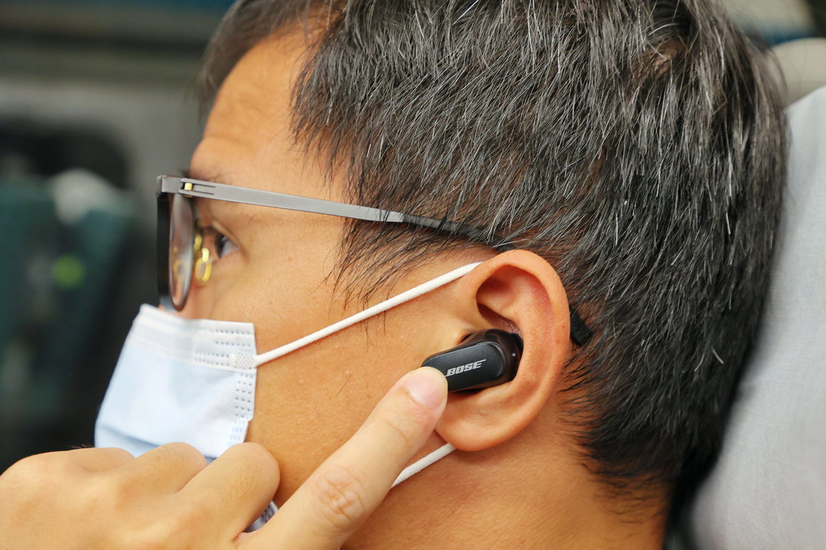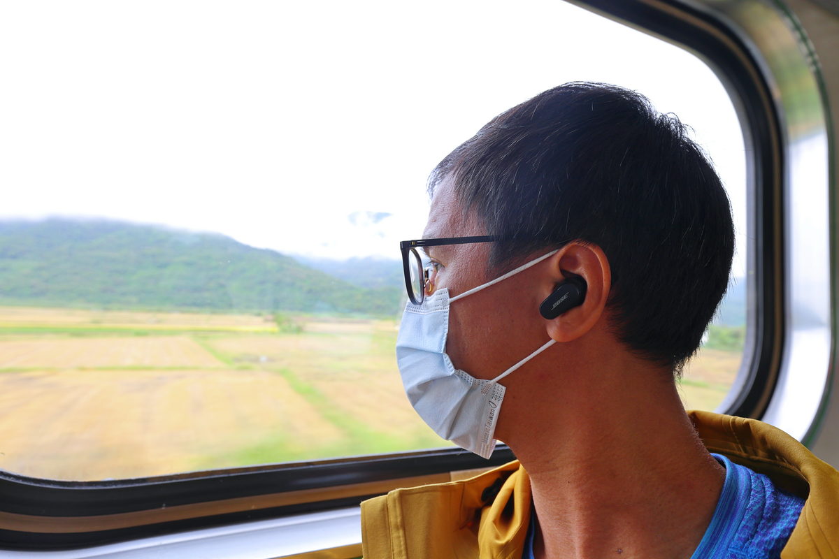 而在高鐵與新自強的搭乘中,多為長途且停靠站較少的狀況,因此我會將Bose消噪耳塞的轉換為感知外界的消噪模式,此時不僅能透過ActiveSense過濾其車輛行駛中所產生的運轉噪音,讓我更能享受窗外沿途風景與感受日本樂團B’z帶來的熱血十足搖滾震撼感之外,也能與出差同行的旅伴們進行順暢討論下車後進行工作之規劃交談,而不需特別拿下耳機,更是相當輕鬆方便。