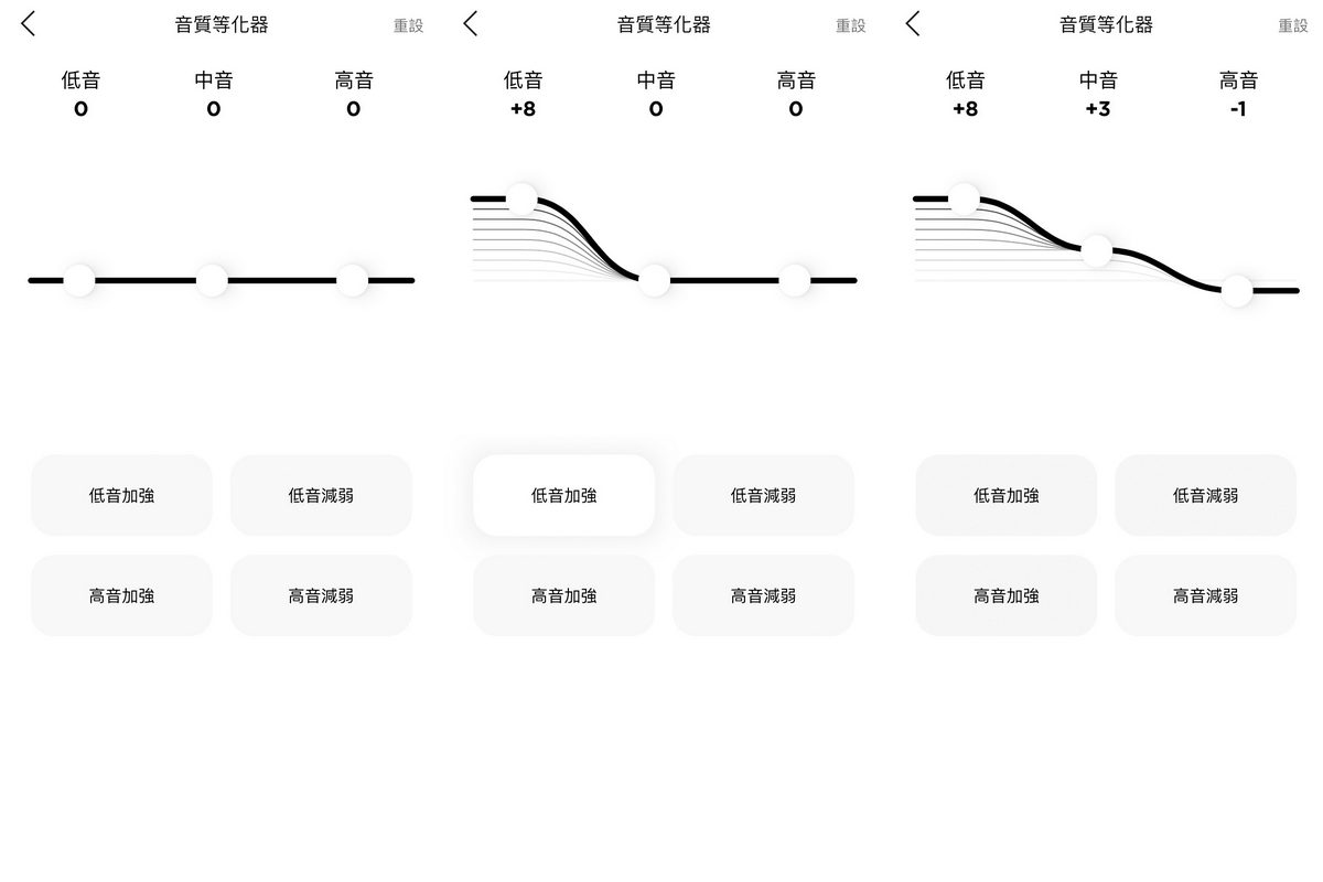向來以渾厚低音表現著稱的Bose,對我來說聽著熱血十足的搖滾、流行樂更是相當匹配,同時能在App選單中的EQ音質等化器針對自己聽音樂喜好類型,進而調整低、中、高音的音場強弱表現,因此除了耳機預設模式中,讓搖滾、流行樂由於現場演唱會般的震撼人心之外,同時也能藉由這些調整享受爵士、藍調、甚至是錄音室等級的完美音樂體驗。