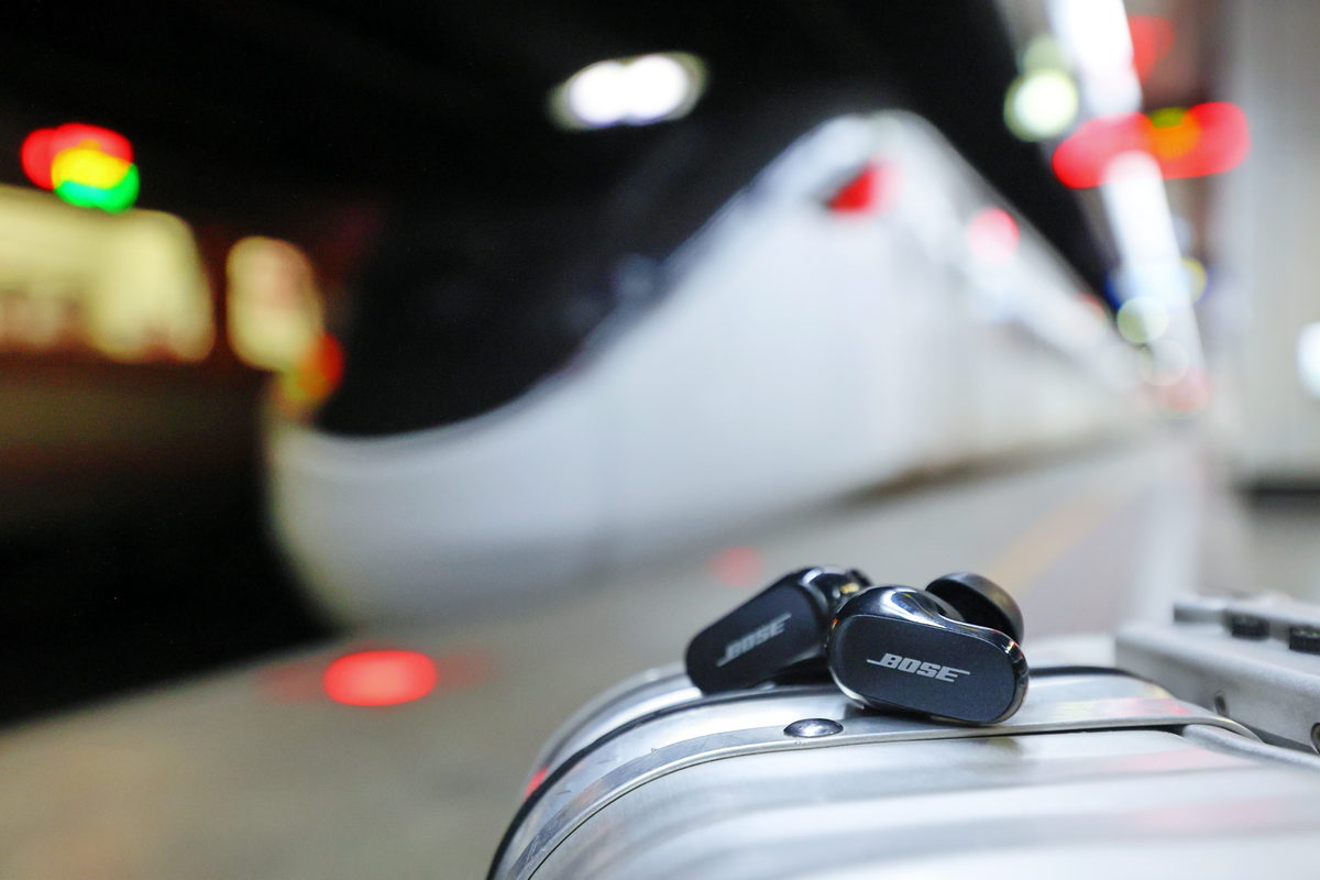 耳機設定完成,在久違的出國旅行到來前,趁著在國內搭乘捷運、高鐵、火車甚至是國內線班機的出差移動中,好好感受Bose消噪耳塞帶來的極致饗宴。住在台北的我,捷運系統是我最常搭乘的短程交通工具,因此透過通勤模式中所設定的居中消噪設定,不僅能保有音樂傳來的熱血震撼,同時也不會錯失過於靜謐聆聽的環境中而不自覺得錯過下車坐過站的可能。