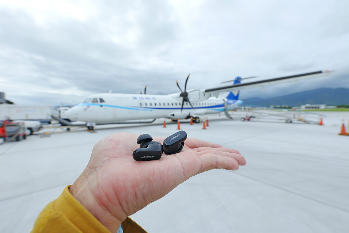 不過佩戴Bose消噪耳塞於上述的交通工具搭乘體驗中,能有如此舒適的靜謐享受早已是Bose行之有年的優異消噪科技,反而在國內線搭乘最為常見的ATR 72這雙螺旋槳飛機搭乘中,Bose消噪耳塞的表現更是令人感到意外的優異,原因雖然噴射客機帶來的噪音較螺旋槳客機大,但是螺旋槳客機在發動機運轉的過程中,旋翼高速運轉劃破空氣時所產生的低頻噪音對比噴射客機運轉時較為強烈許多,而在使用Bose消噪耳塞開啟完全靜謐的“安靜”模式下,不僅在螺旋槳發動機啟動時帶來的極低頻噪音震撼下有著極度寧靜的消噪回饋之外,隨著飛機動力輸出提高,進而起飛、爬升至1萬英呎的空中進行巡航,Bose消噪耳塞不僅在安靜模式下給予像是包機一樣的獨享空間之靜謐感受之外,卻不會因為完全消噪讓身體產生過於寧靜的不適感,更能享受音樂風景帶來的暢快感受,即便不聽音樂,透過Bose消噪耳塞完全安靜的體驗佩戴,已經預見未來長程飛行時想要有著完美的休息品質,這媲美商務艙消噪耳機的真無線消噪耳機,不僅能有著同樣的寧靜品質,同時還能透過手機的串聯,在飛行過程中獨享屬於自己的音樂清單呢。