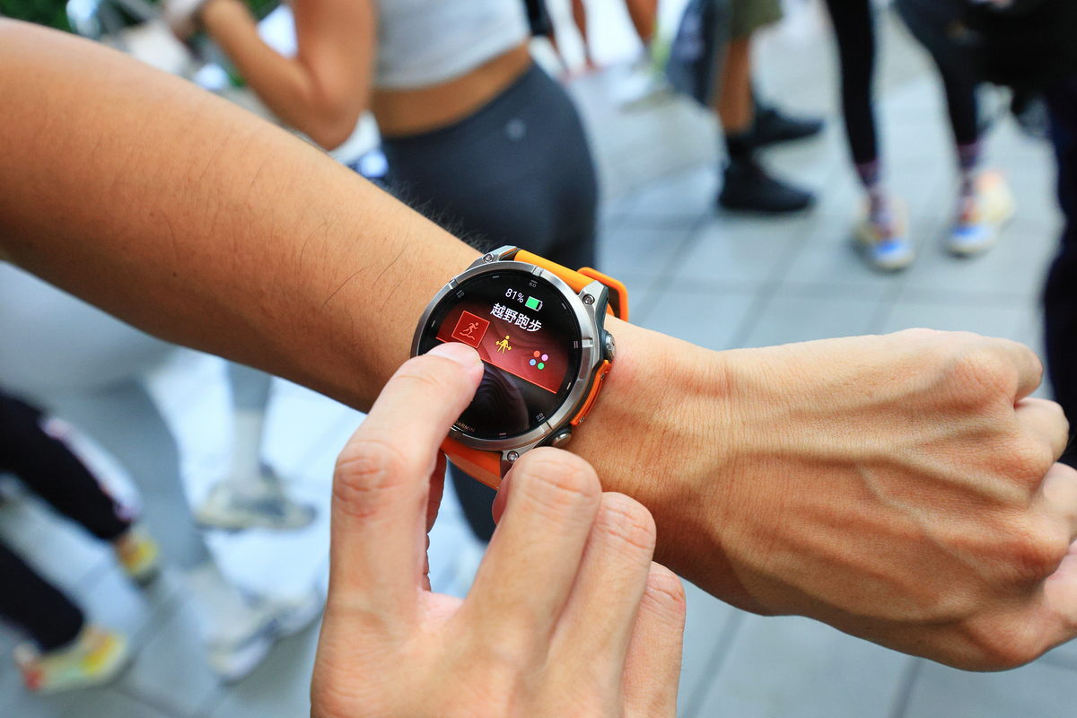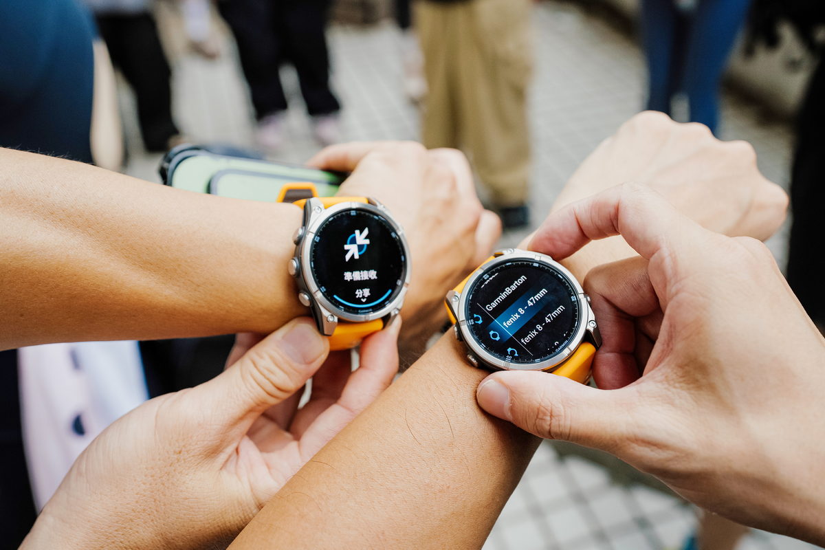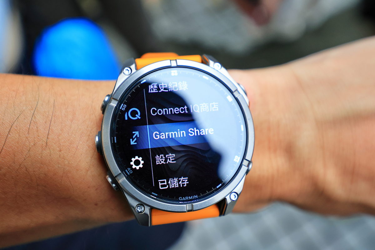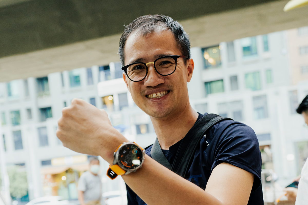 到了接近傍晚時分,抵達捷運劍潭站2號出口與大家會合後,首先Garmin的夥伴隨即拿出43mm、47mm、51mm各種錶徑尺寸的FĒNIX 8,讓此行與會的旅伴們能依照自己的手腕身形,挑選適合自己配戴比例的尺寸,因此我選擇完整服貼自己手腕的47mm,做為此行體驗的佩戴選擇。同時在這此體驗全新上市的FĒNIX 8中,而手中這只有著相當亮眼鮮明的火花橙錶帶,與質感相當洗鍊的DLC鈦錶圈一同搭配下,不僅能在運動過程中有著極具個性化的視覺感受之外,同時對上班時間需要參加各種會議與活動的我來說,搭配正裝也相當有自己的鮮明品味。此外FĒNIX 8除了依照各種錶徑尺寸所涵蓋香頌灰、獵影黑、火花橙三種矽膠錶帶配色之外,也能依照自己的喜好,透過Quickfit錶帶多元繽紛的各式錶帶,隨著自己的心情與場合,一鍵快速更換適合的錶帶,相當便利快意。