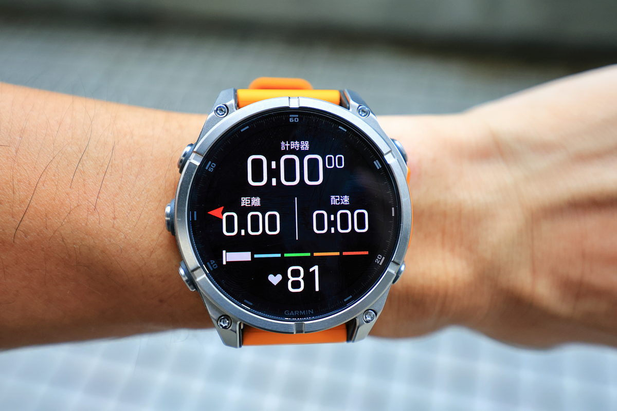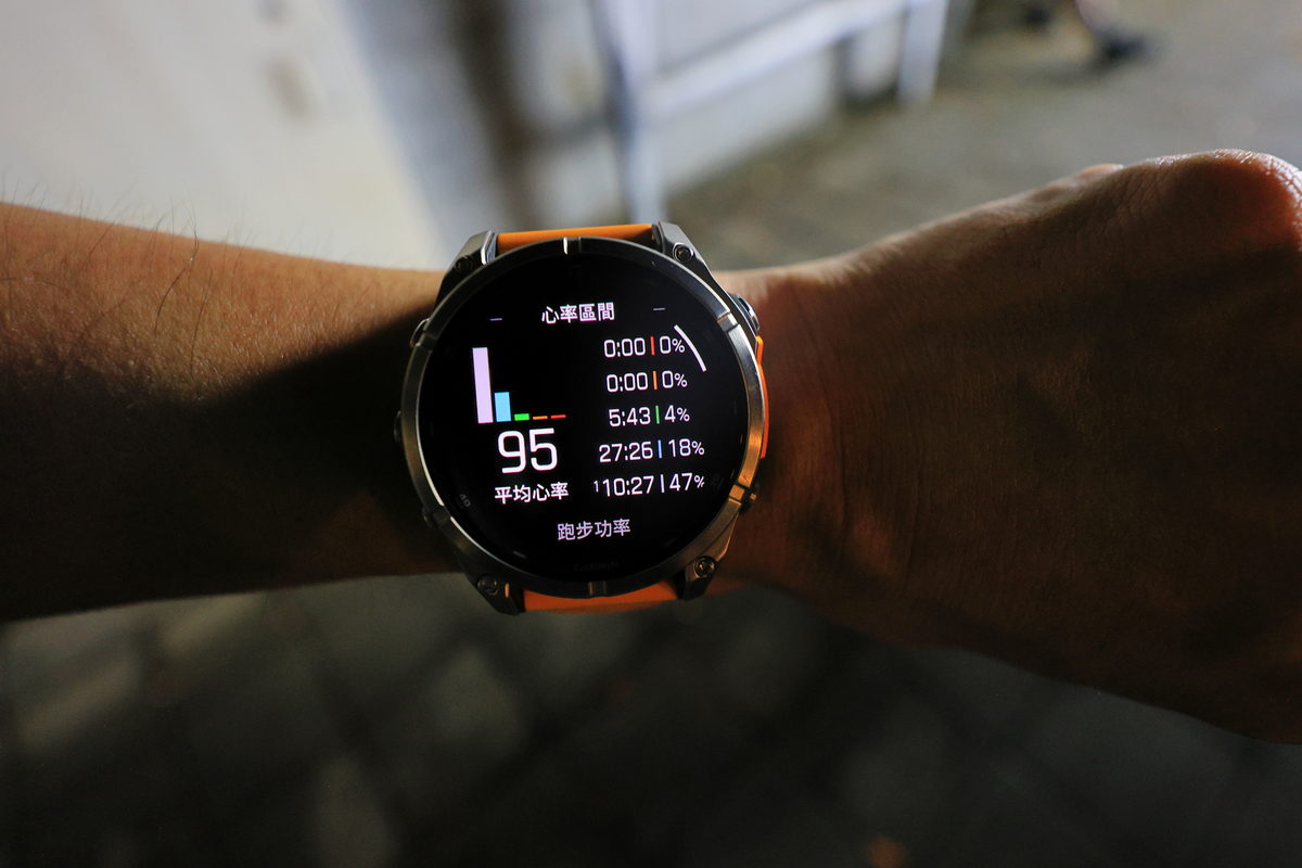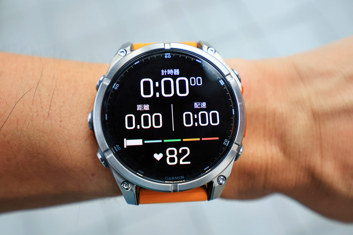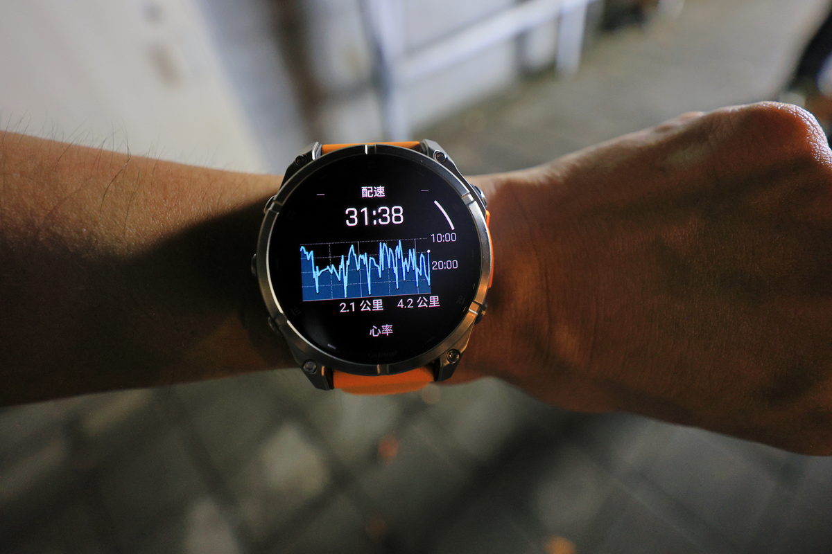 將FĒNIX 8戴在手上後,除了鮮明的錶帶配色之外,這次體驗的錶款更是首次搭載AMOLED螢幕的版本,因此錶面不僅呈現更繽紛絢麗的飽和度與對比度之外,同時FĒNIX系列向來強調錶有著有多元資訊顯示的性能,也因AMOLED螢幕的加持下,無論主要資訊的大字,或是輔助資訊的小字,皆有著清晰細緻的顯示呈現,這對於隨著年齡增長,視力逐漸老化的我來說,更是相當舒服辨識的暢快感受。