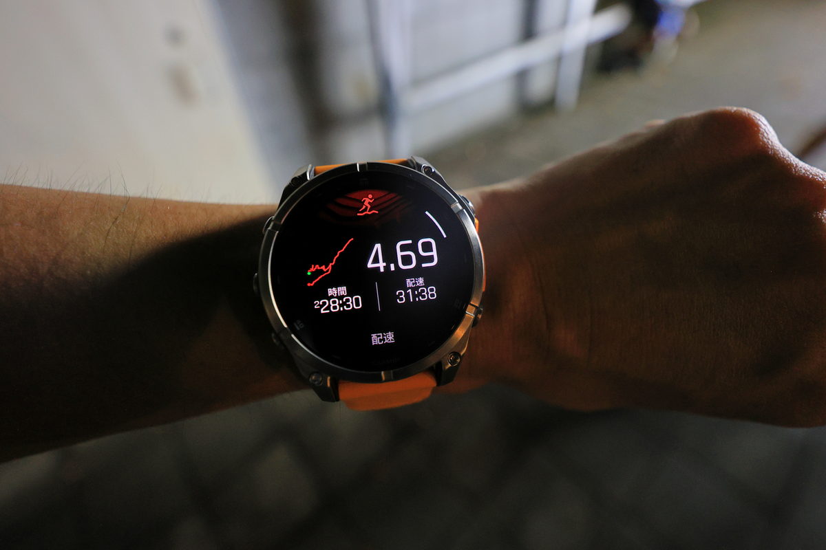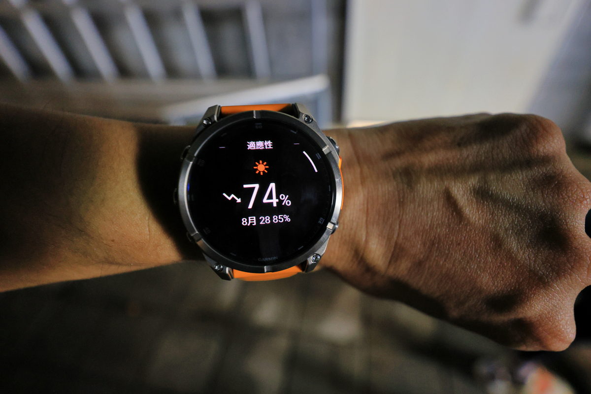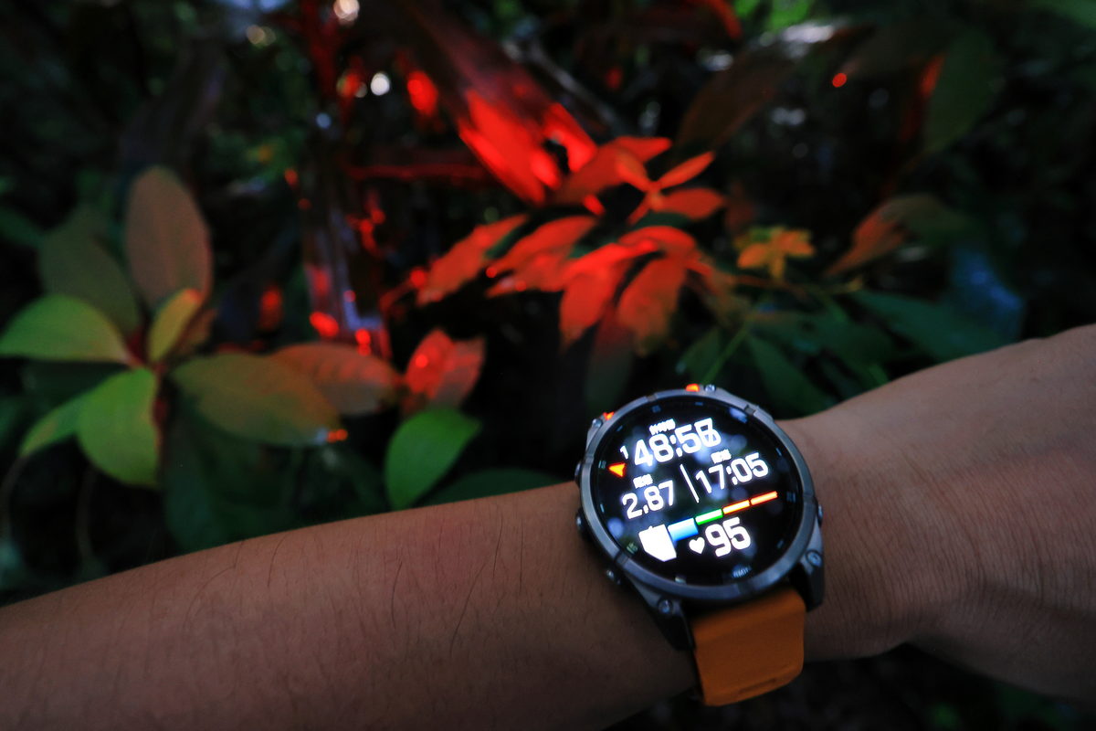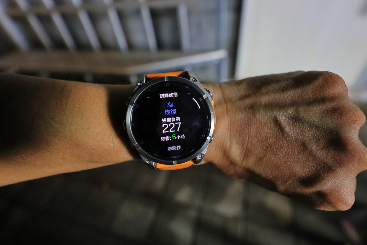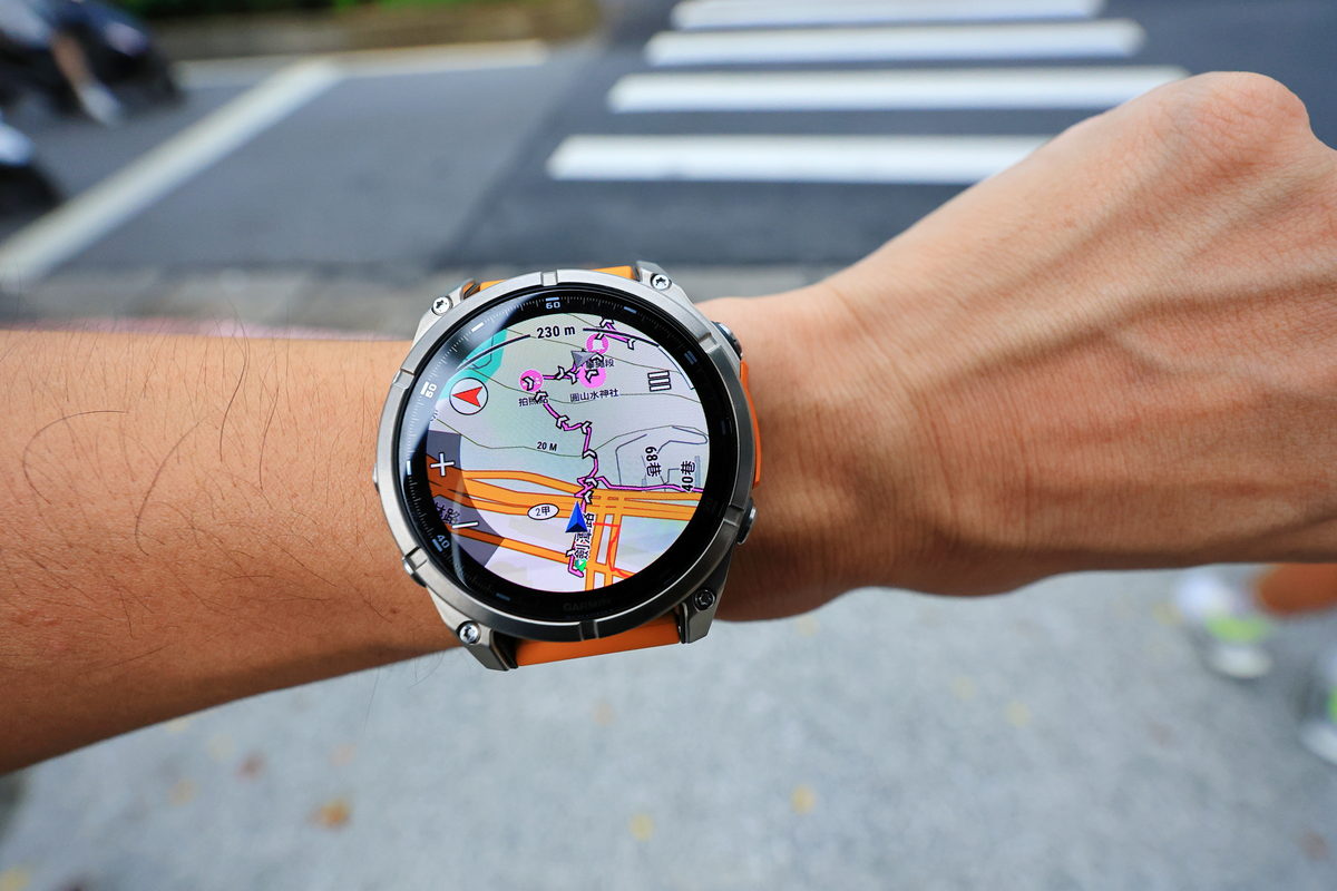 將FĒNIX 8戴在手上後,除了鮮明的錶帶配色之外,這次體驗的錶款更是首次搭載AMOLED螢幕的版本,因此錶面不僅呈現更繽紛絢麗的飽和度與對比度之外,同時FĒNIX系列向來強調錶有著有多元資訊顯示的性能,也因AMOLED螢幕的加持下,無論主要資訊的大字,或是輔助資訊的小字,皆有著清晰細緻的顯示呈現,這對於隨著年齡增長,視力逐漸老化的我來說,更是相當舒服辨識的暢快感受。