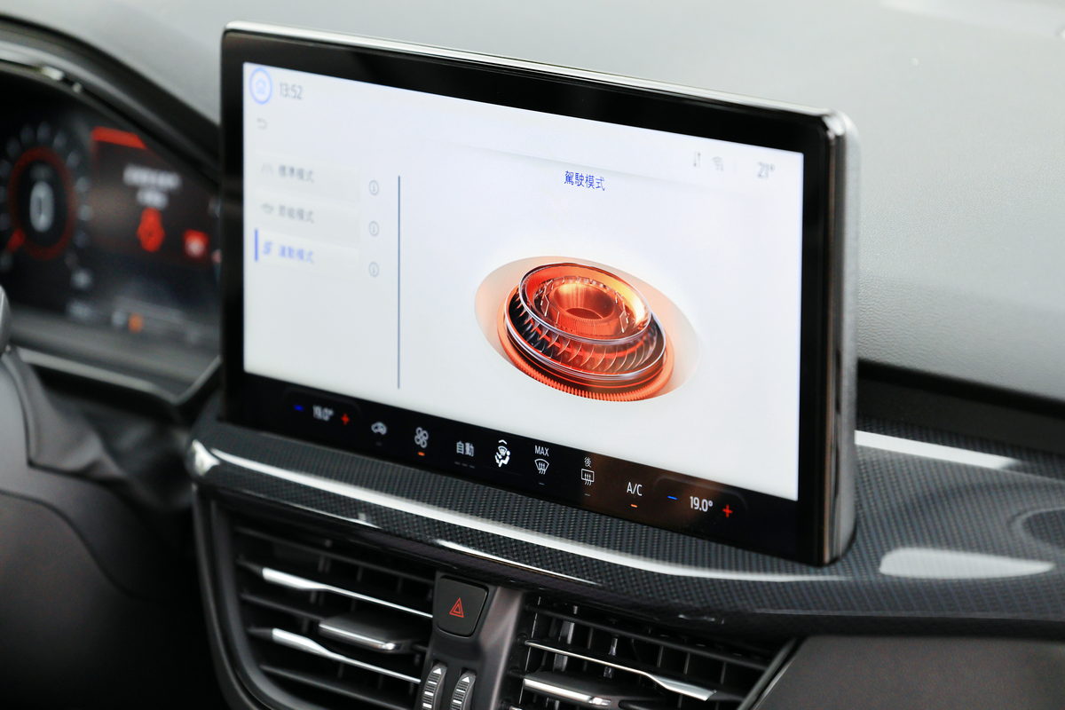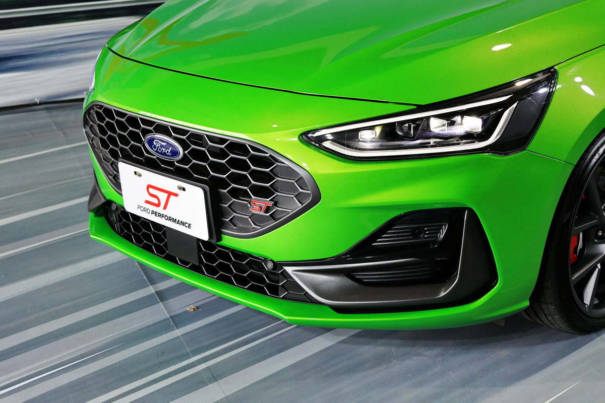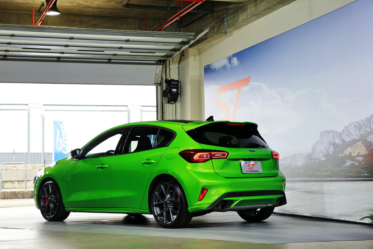 三道關卡體驗完畢,隨著媒體團回到PIT BOX等待大賽道的試駕之餘,正是好好欣賞眼前這頭綠色猛獸Ford Focus ST X掀背車,雖然此行並未安排試駕體驗,但是看這它鮮明的綠色,搭配著襯托鮮紅ST銘牌的霧黑水箱罩與下氣壩、腳踩著235/35 R19的Pirelli P Zero專屬配胎,儼然已是一部相當兇狠的地面飛行器。打開引擎蓋,這顆冠上Ford Performace的2.3L EcoBoost雙渦流渦輪增壓汽油引擎,更可在3000rpm給予42.3kg-m的最大扭力,同時將期加速動力延伸至6000rpm展現280ps的最大馬力,透過駕駛艙內Ford Performace這張AGR德國脊椎健康協會認證同時包覆支撐性十足的14向電動跑車座椅、熱血的6速手排配置與彈射起步功能,Ford Focus ST X掀背車僅只是展示,已經感受其濃濃的躁動硬派因子,不過可別以為Ford Focus ST X車型只能讓出手排就買的玩家能一親芳澤,在Ford Focus全新改款的發表會中,同時推出7速自排的Ford Focus ST X旅行車型,讓家庭出遊、大件行李裝載之餘也能輕鬆享受極為硬派熱血駕馭的人也能一併兼得呢!