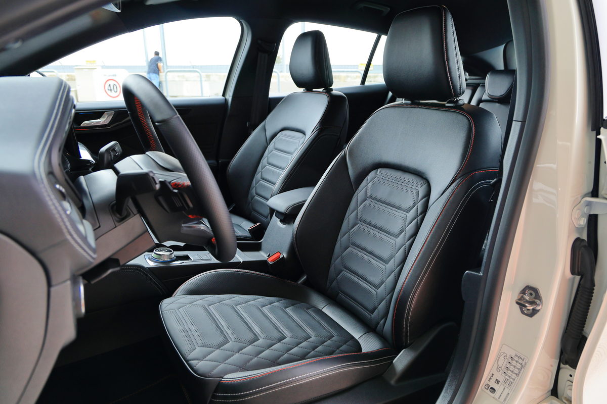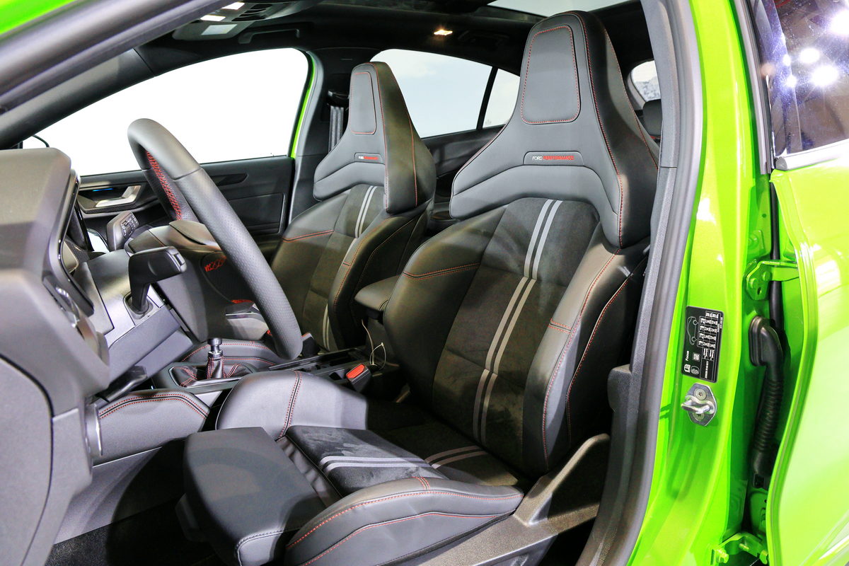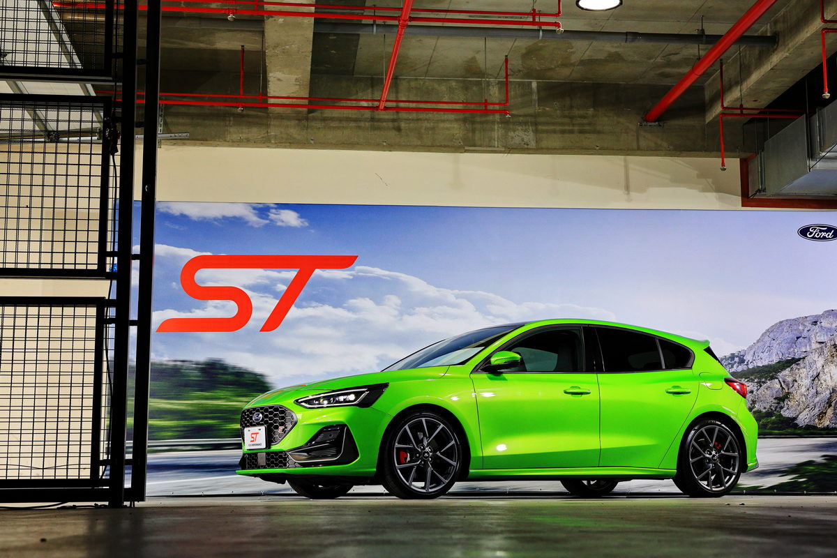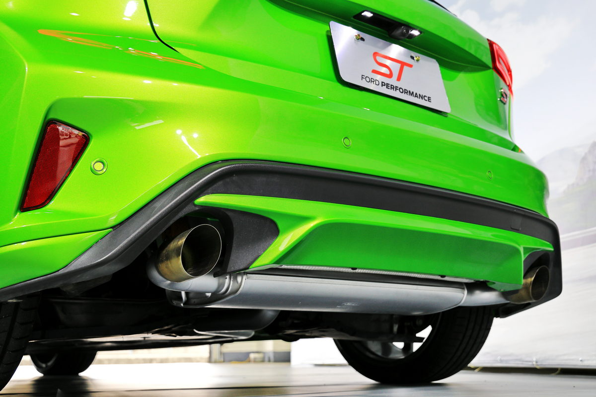三道關卡體驗完畢,隨著媒體團回到PIT BOX等待大賽道的試駕之餘,正是好好欣賞眼前這頭綠色猛獸Ford Focus ST X掀背車,雖然此行並未安排試駕體驗,但是看這它鮮明的綠色,搭配著襯托鮮紅ST銘牌的霧黑水箱罩與下氣壩、腳踩著235/35 R19的Pirelli P Zero專屬配胎,儼然已是一部相當兇狠的地面飛行器。打開引擎蓋,這顆冠上Ford Performace的2.3L EcoBoost雙渦流渦輪增壓汽油引擎,更可在3000rpm給予42.3kg-m的最大扭力,同時將期加速動力延伸至6000rpm展現280ps的最大馬力,透過駕駛艙內Ford Performace這張AGR德國脊椎健康協會認證同時包覆支撐性十足的14向電動跑車座椅、熱血的6速手排配置與彈射起步功能,Ford Focus ST X掀背車僅只是展示,已經感受其濃濃的躁動硬派因子,不過可別以為Ford Focus ST X車型只能讓出手排就買的玩家能一親芳澤,在Ford Focus全新改款的發表會中,同時推出7速自排的Ford Focus ST X旅行車型,讓家庭出遊、大件行李裝載之餘也能輕鬆享受極為硬派熱血駕馭的人也能一併兼得呢!