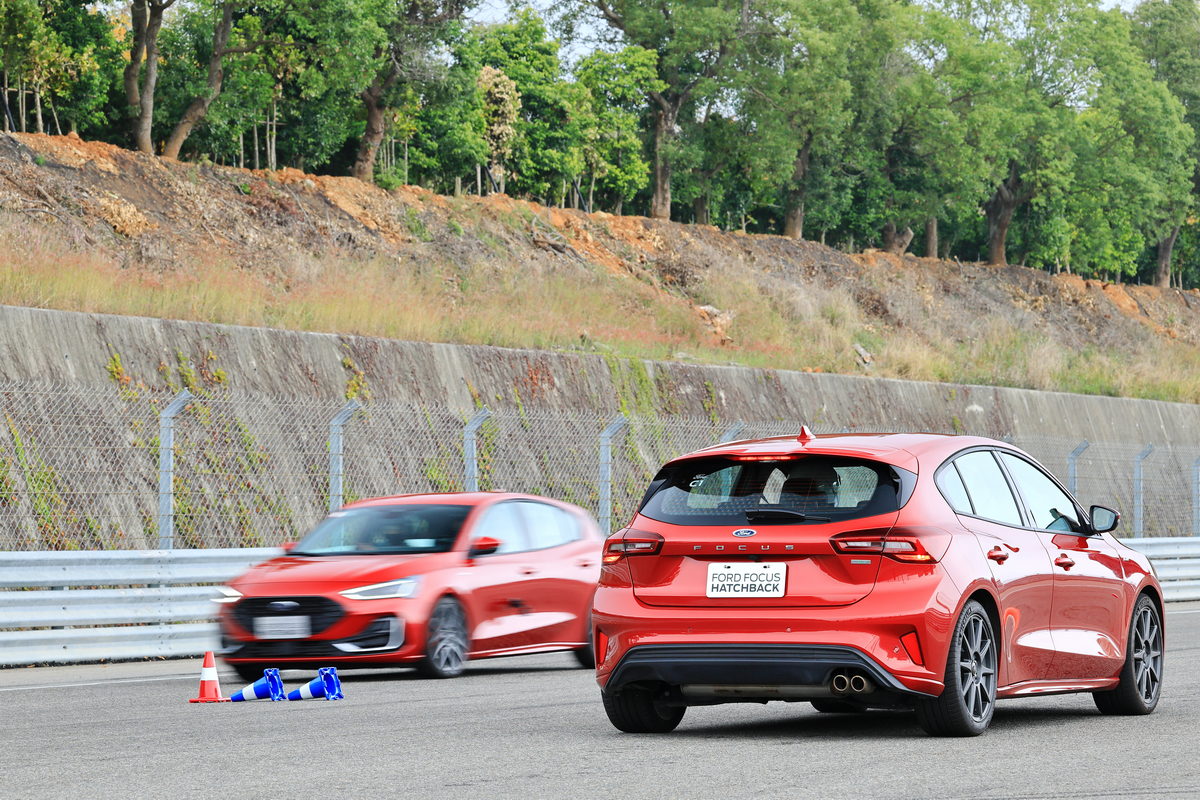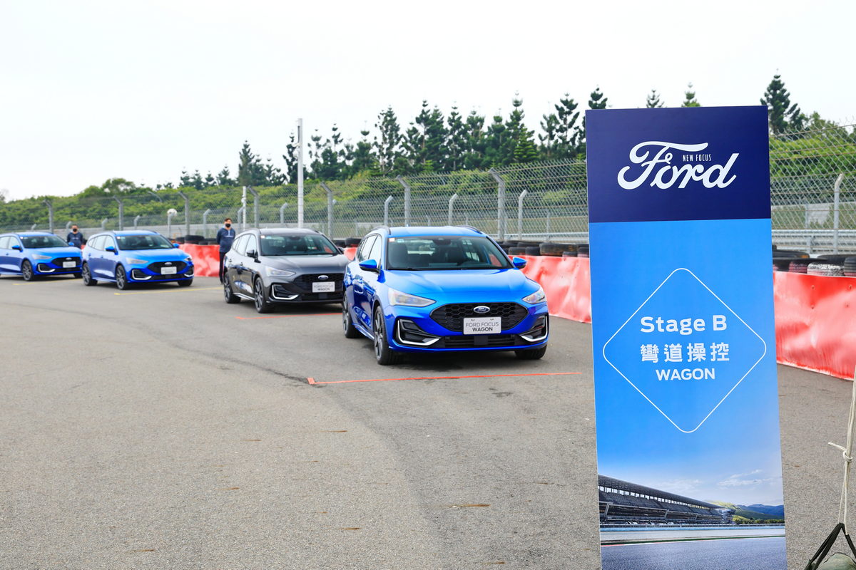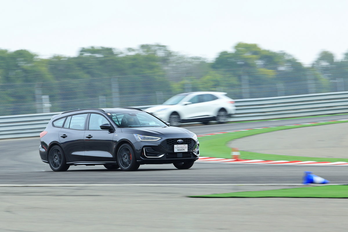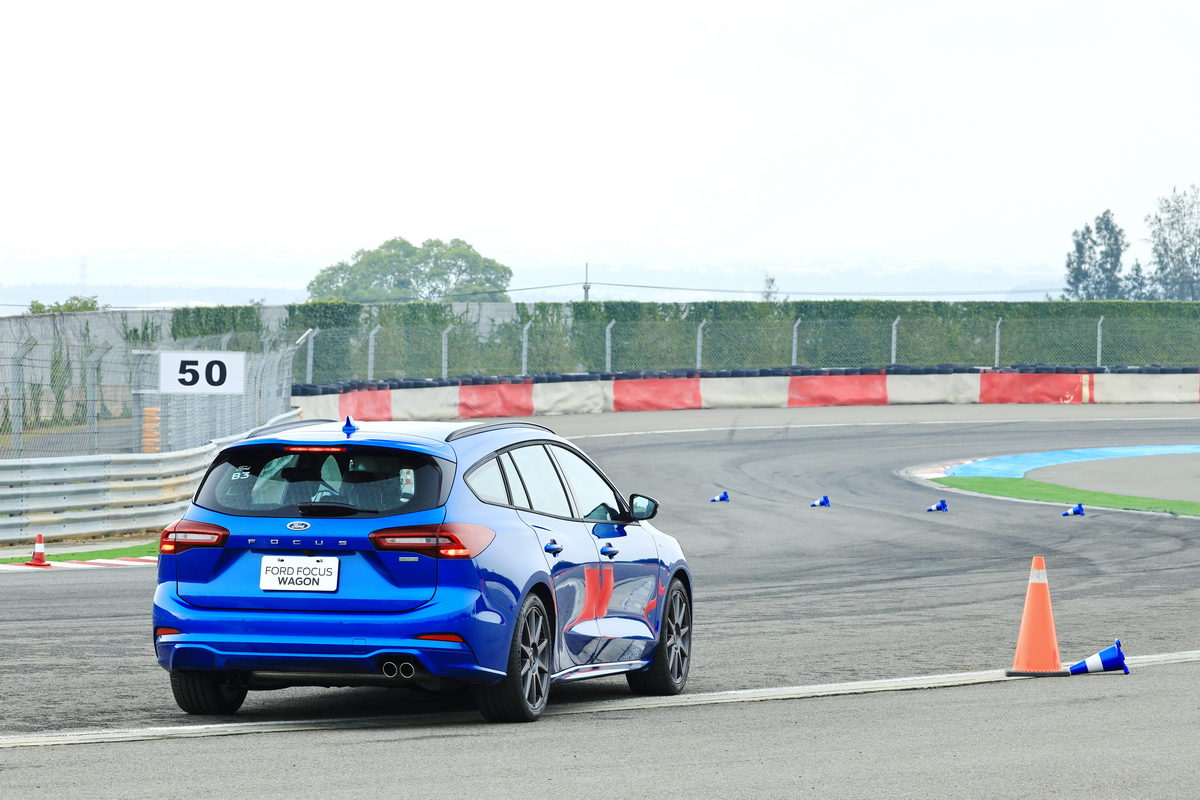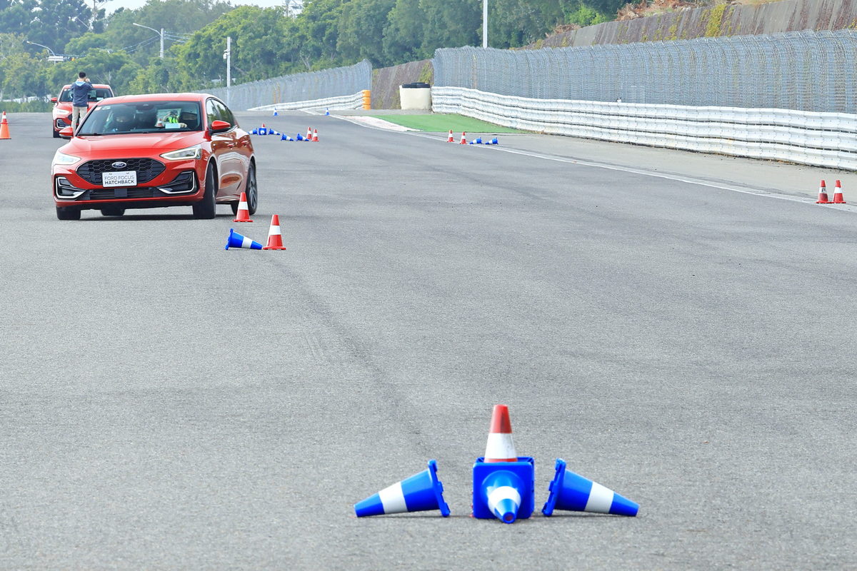 很快的,我們開始進行分組體驗,此行的賽道駕駛體驗活動中,每組皆體驗高速換道、彎道操控、連續繞錐這三道關卡體驗Ford Focus ST-Line Vignale(以下簡稱Ford Focus)五門掀背、旅行車這兩款車型在短程的激烈操駕之下,其C2底盤與懸吊給予駕駛的回饋反應,體驗完畢後,再清空賽道,進行全長3.5公里,並駕駛2圈的G2賽道大賽道體驗。