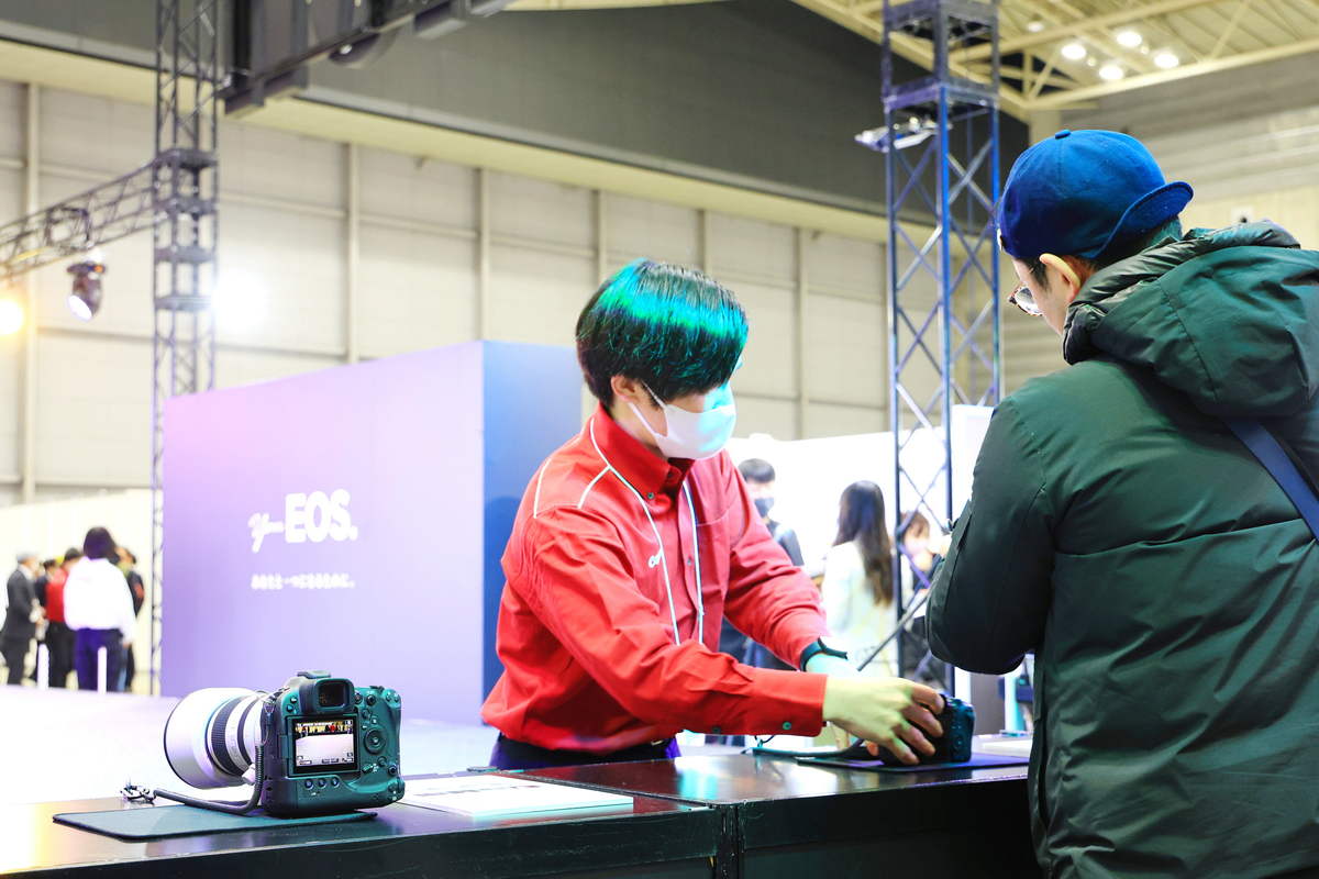 接著於開展前一日從台北松山機場出發前往日本東京羽田機場,再轉乘京濱急行巴士直搭車前往位於日本橫濱Pacifico旁的飯店安頓好後,終於到了2/22(四)開展的這天早晨,雖然外頭下著寒冷的冰雨,不過走進偌大的橫濱Pacifico展覽會場內,等待進場的熱鬧人潮,卻也讓整個空間暖和許多,而在服務人員掃描我手中證件QRCode完成進場手續後,參觀首站二話不說直接前往Canon展區一探究竟。