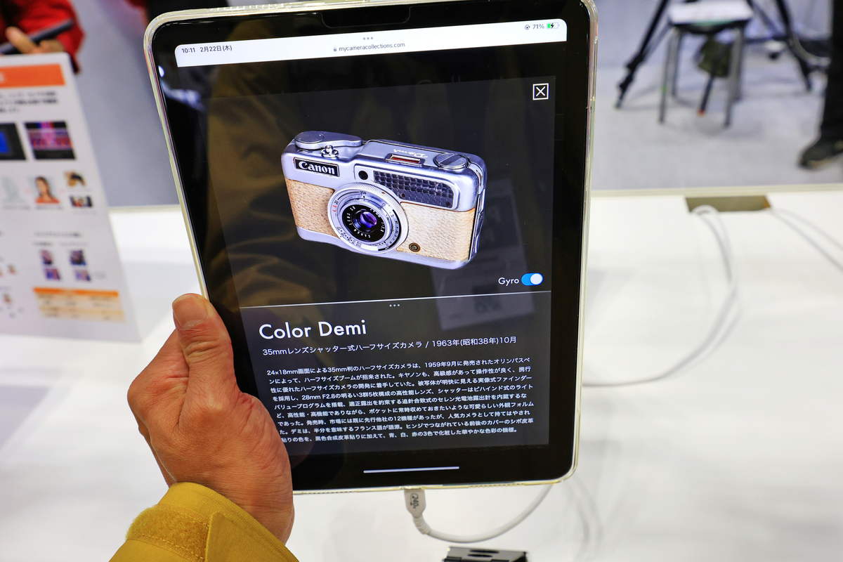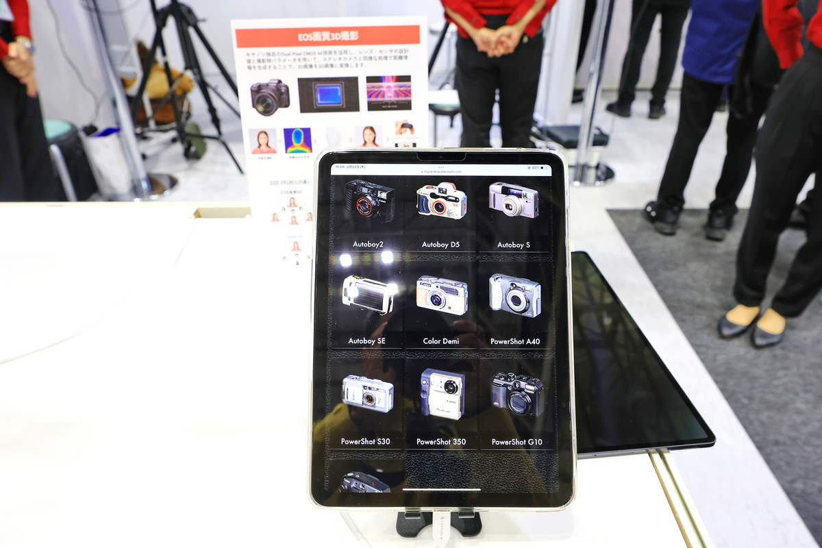 除了MR/VR的虛擬實境科技之外,Canon更規劃了一區裸視3D的科技體驗,這項科技的展現,不僅是透過RF5.2mm f/2.8L Dual Fisheye這昔日曾稱作Concepet Model 001的鏡頭所呈現,未來更有著APS-C專用的Concepet Model 002以及可透過翻折鏡頭,呈現360/180度視角的Concepet Model 003等鏡頭正蓄勢待發呈現於世人眼中,其中Canon以這些鏡頭拍攝過往老相機,進而讓我們能以裸視的方式,轉動平板即可細細觀賞其相機各種角度、細節的裸視3D照片,同時為了讓大家更能感受裸視3D照片的真實感受,也邀請來訪的攝影玩家們Concepet Model 002鏡頭下拍攝一張裸視3D的大頭照,並透過e-mail寄送給玩家做為紀念,感受第一次被拍攝裸視3D的大頭照,更是相當有趣與真實呢!